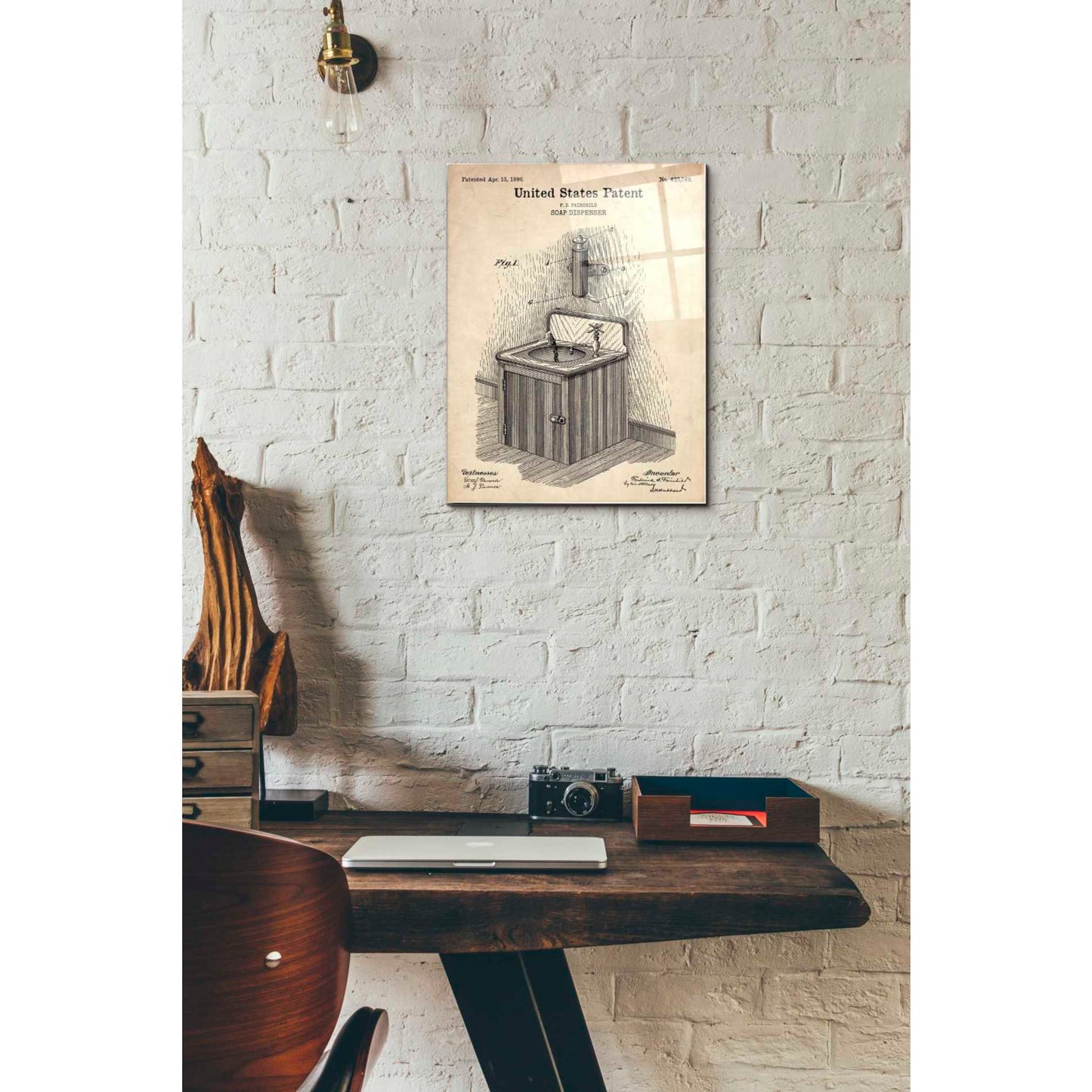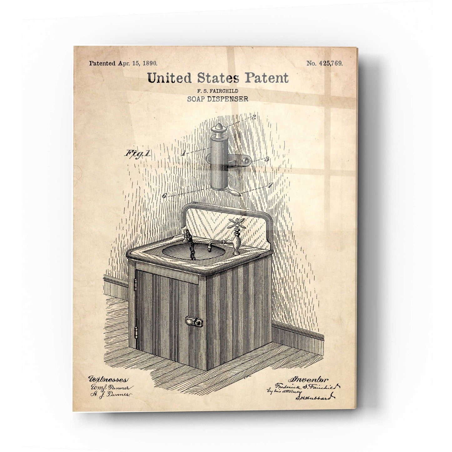 Epic Art 'Soap Dispenser Blueprint Patent Parchment' Acrylic Glass Wall Art