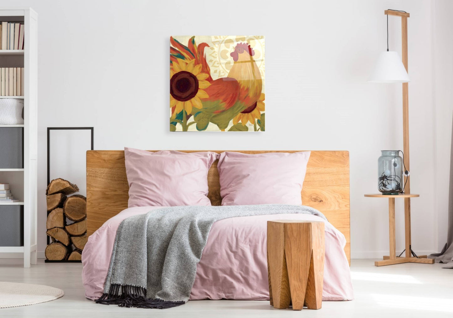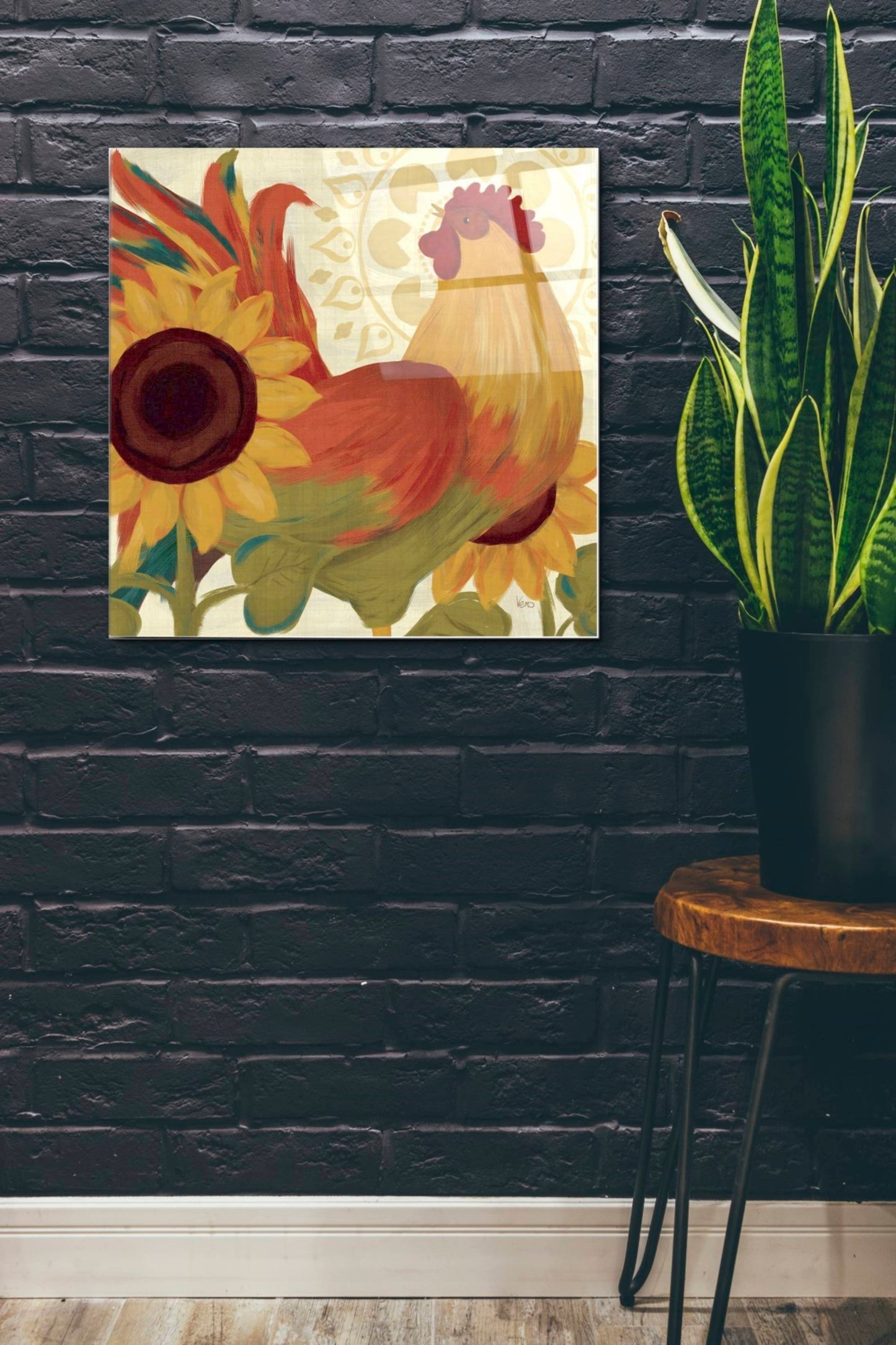 "Spice Roosters II" by Veronique Charron printed on crystal clear acrylic glass.Veronique Charron is a French Canadian artist residing in Charlevoix, Quebec. The environment surrounding her country home provides the inspiration for her graphic designs. Although she had formally studied graphic art and design, Veronique"s style of artwork has evolved into a unique mixture of textures, colors, and fashionable flair. Acrylic wall art looks amazing in your home or business. Printed on the back of the acrylic giving it depth and easy maintenance. The super durable and hard-to-damage qualities make it the ideal wall art for hotels, rental properties, and restaurants. Now Epic Art brings it to you at unbelievably low prices making it very affordable for your home as well. From small sizes to extra large sizes, it is easy to hang, won"t shatter like glass if it ever falls down, and is easy to maintain. Simply dust it off or use a damp soft cloth for cleaning.For small sizes, mounting brackets and padded bumpers will be attached for simple hanging. For the larger sizes, pre-drilled holes and fitted metal standoffs are included for easy wall installation.