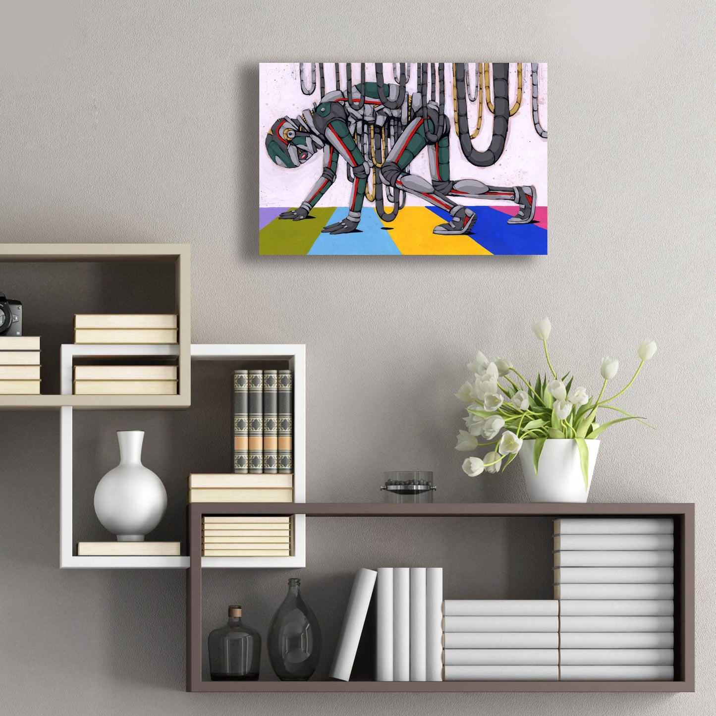 - Modern art with vibrant colors and extraordinary depth comes ready to hang with a mounted hanging plate on the back