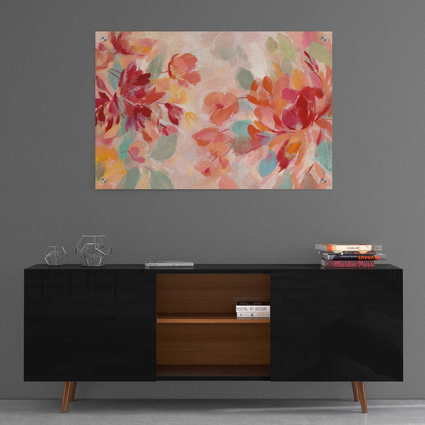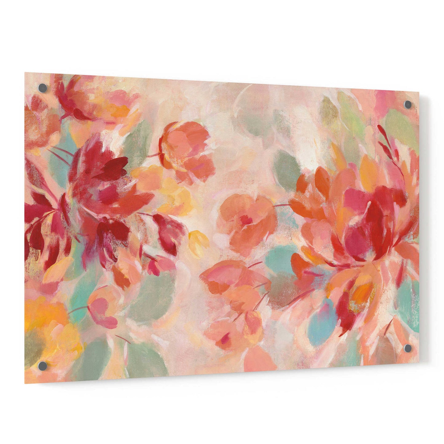 "Spring Galore I" by Silvia Vassileva. Silvia Vassileva pursued her love of art at the Academy of Fine Art in Bulgaria, where she earned both her bachelor's and master's degrees. She spent six years painting and exhibiting her work in Japan before moving to the U.S. Silvia describes her style as very free and bold. She makes her paintings come alive by using contrast and unusual color palettes. Silvia's home studio, which she designed herself, is bright, contemporary and minimalist. Acrylic wall art looks amazing in your home or business. Printed on the back of the acrylic giving it depth and easy maintenance. The highly durable and hard-to-damage qualities make high definition acrylic the ideal wall art for hotels, rental properties, and restaurants. Now Epic Art brings you unmatched value in contemporary wall decor for your home as well. From small sizes to extra large sizes, it is easy to hang, won't shatter like glass if it ever falls down, and is easy to maintain. Simply dust it off or use a damp soft cloth for cleaning.