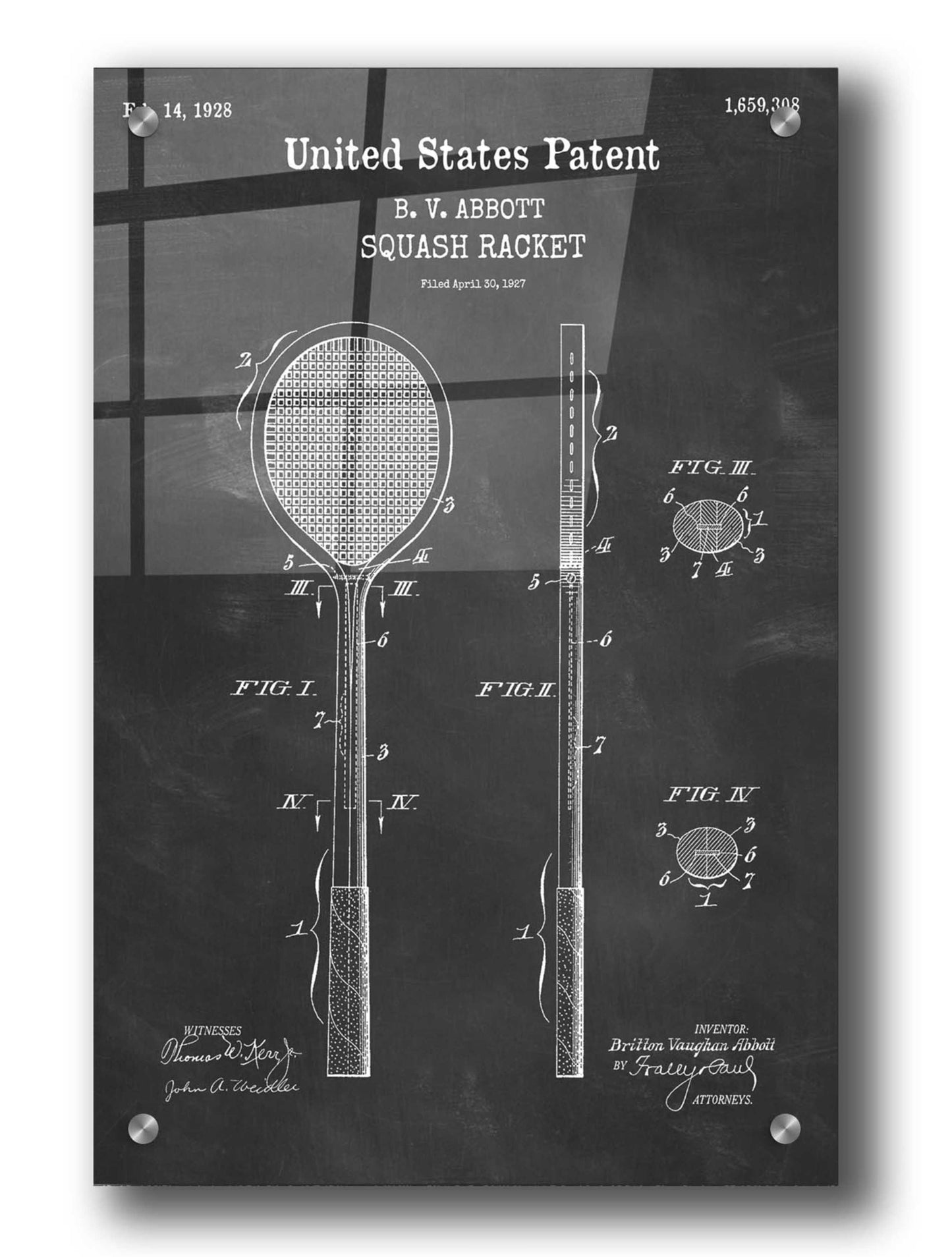 Epic Art 'Squash Racket Blueprint Patent Chalkboard,' Acrylic Glass Wall Art