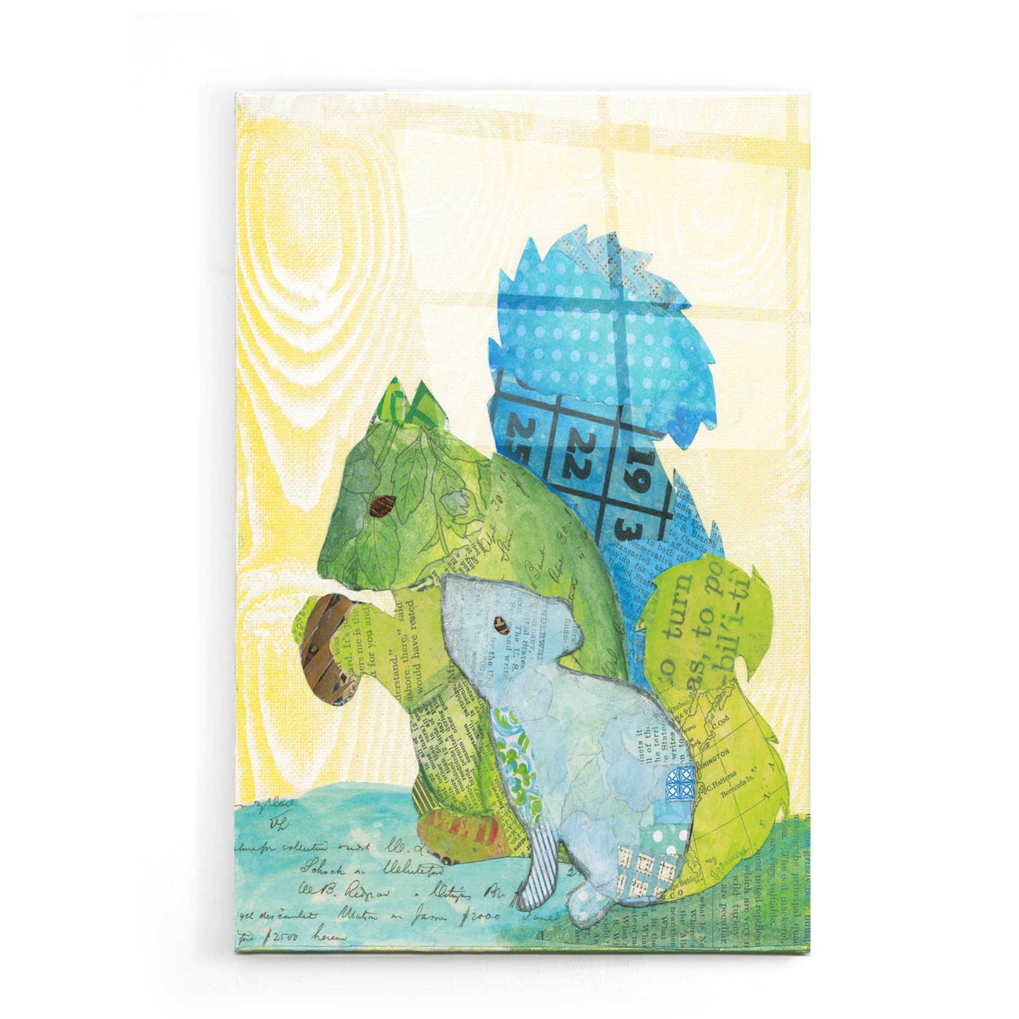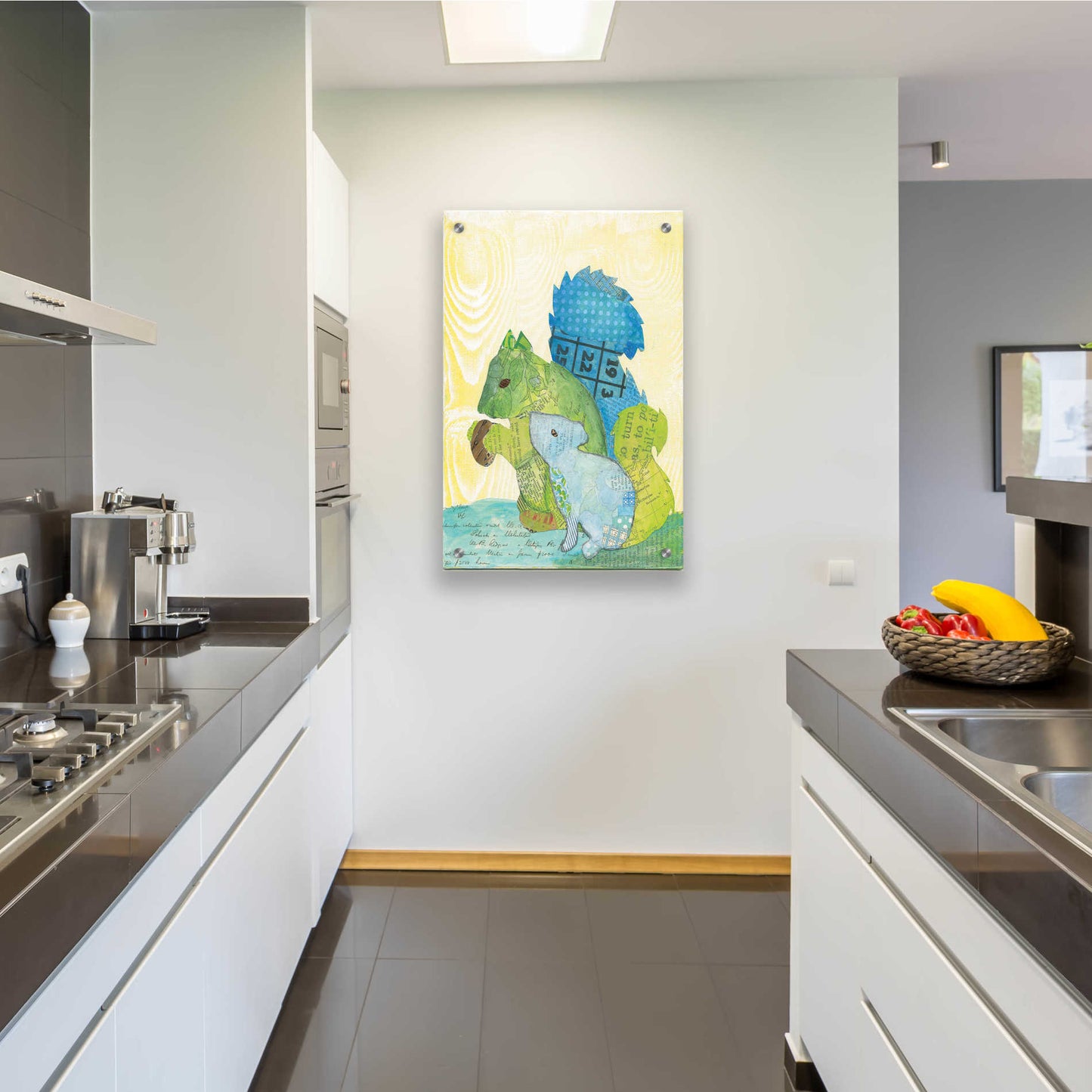 "Squirrel Family" by Courtney Prahl. Courtney is a mixed media artist. Collaging old and new materials are her signature style. She enjoys searching for vintage art materials to incorporate into her artwork. Residing in Maryland with her husband and two sons, she teaches art to children and is co-founder of her local art charity "Lend a Hand." Acrylic wall art looks amazing in your home or business. Printed on the back of the acrylic giving it depth and easy maintenance. The highly durable and hard-to-damage qualities make high definition acrylic the ideal wall art for hotels, rental properties, and restaurants. Now Epic Art brings you unmatched value in contemporary wall decor for your home as well. From small sizes to extra large sizes, it is easy to hang, won't shatter like glass if it ever falls down, and is easy to maintain. Simply dust it off or use a damp soft cloth for cleaning.