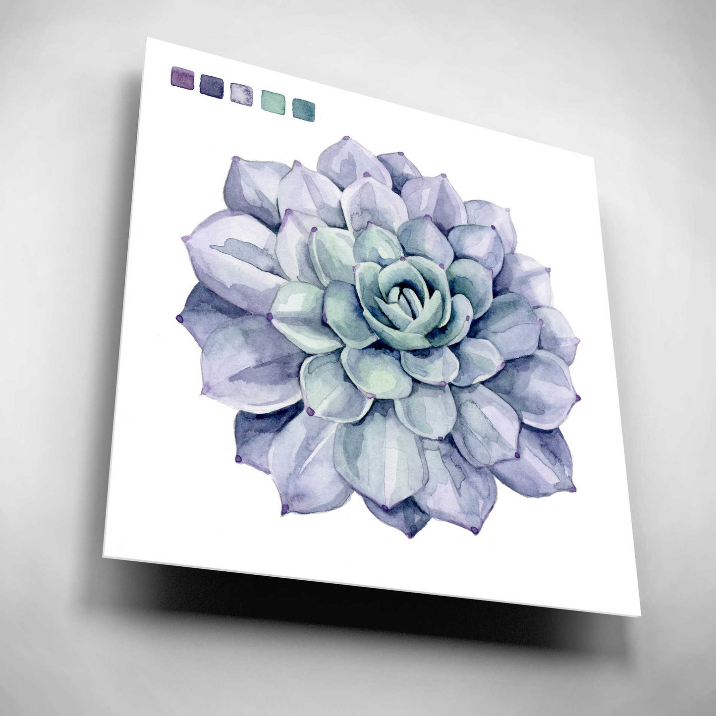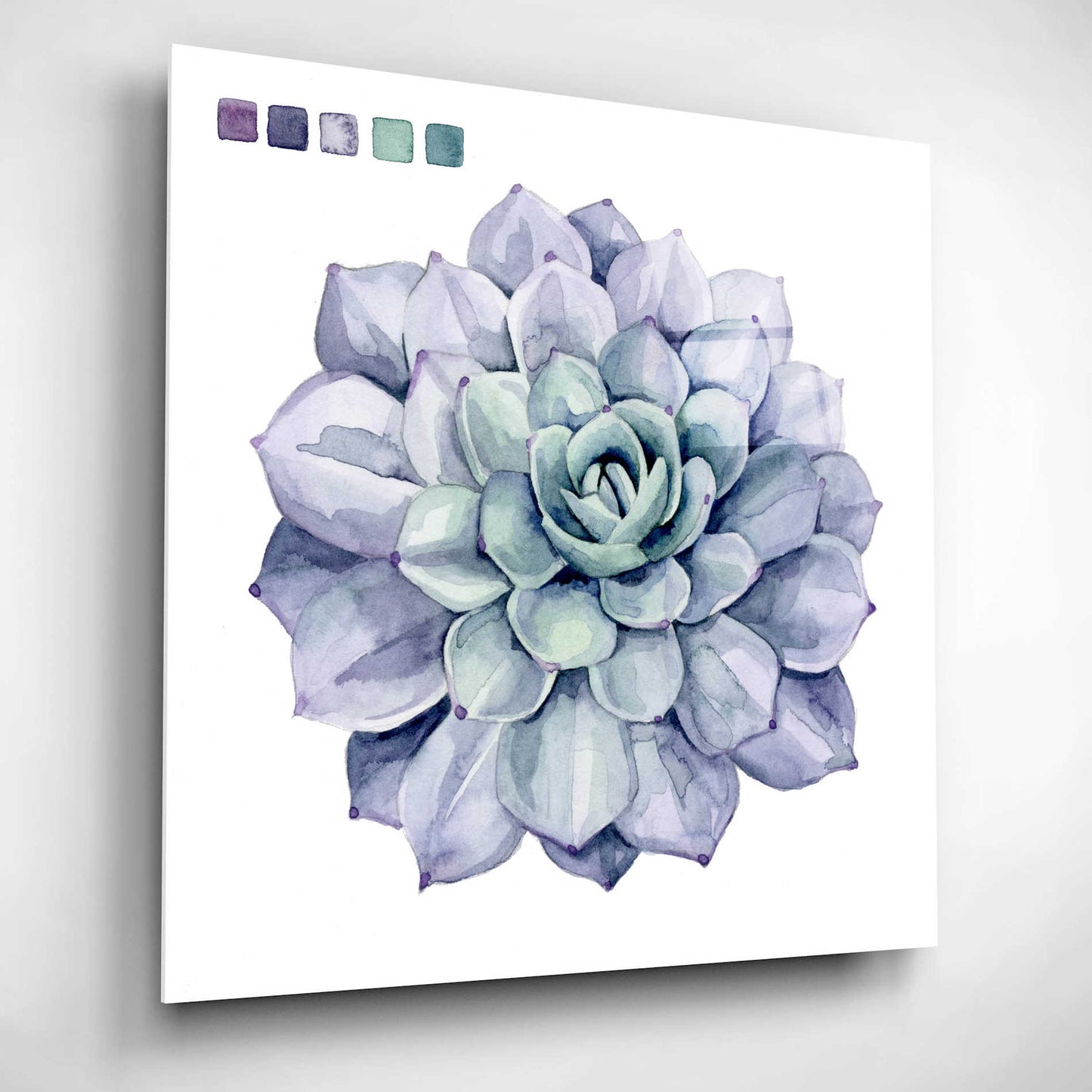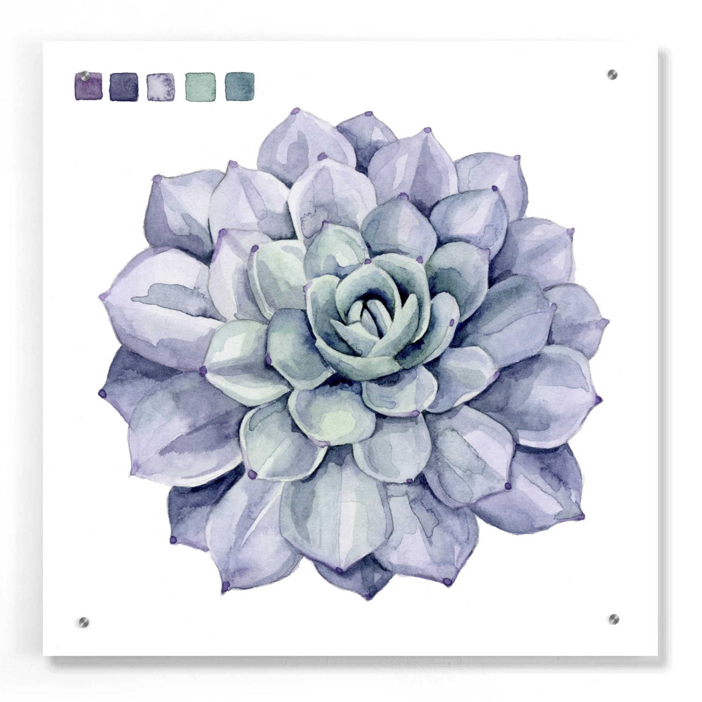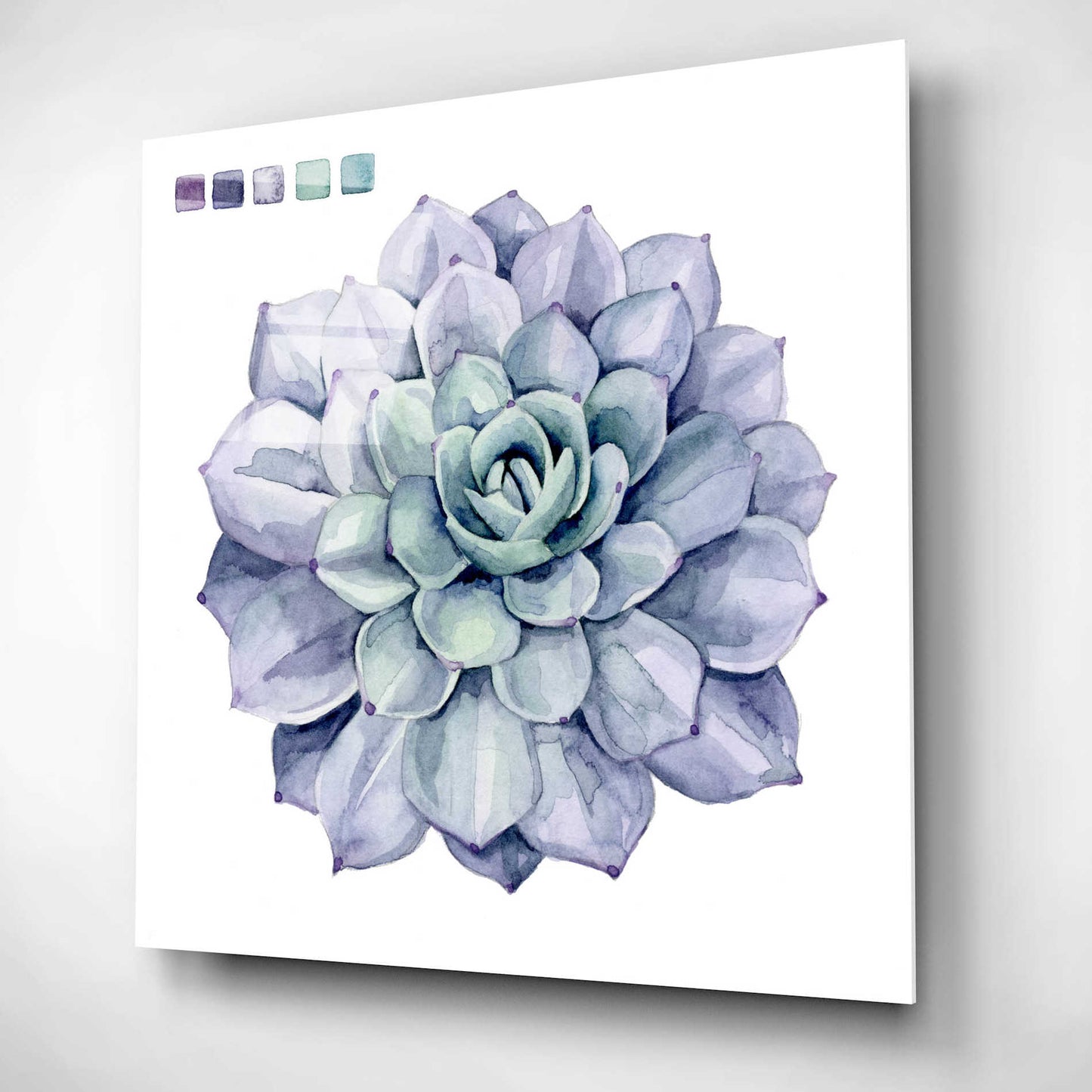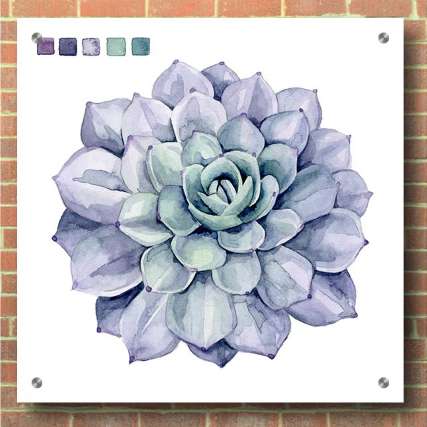 "Succulent Swatches III" by Grace Popp. Grace Popp"s primary medium has become watercolor, which she periodically supplements with other materials. She is inspired" by nature, films, history, current events, and other artists both past and present. Acrylic wall art looks amazing in your home or business. Printed on the back of the acrylic giving it depth and easy maintenance. The highly durable and hard-to-damage qualities make high definition acrylic the ideal wall art for hotels, rental properties, and restaurants. Now Epic Art brings you unmatched value in contemporary wall decor for your home as well. From small sizes to extra large sizes, it is easy to hang, won"t shatter like glass if it ever falls down, and is easy to maintain. Simply dust it off or use a damp soft cloth for cleaning.
