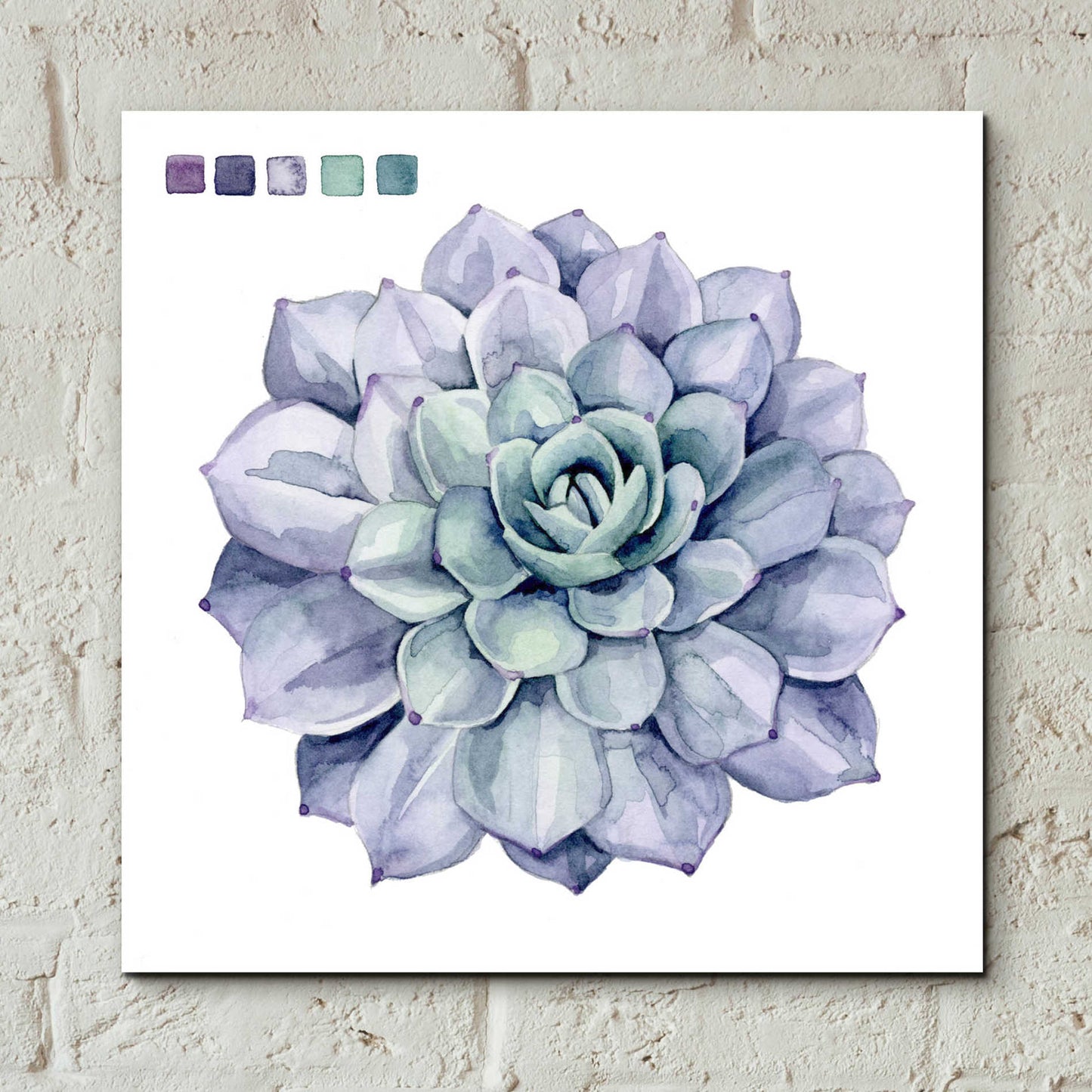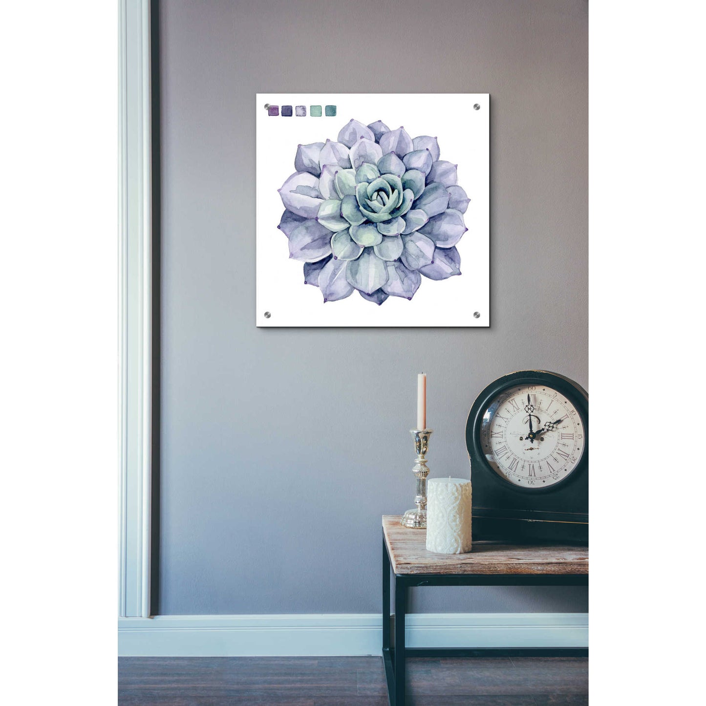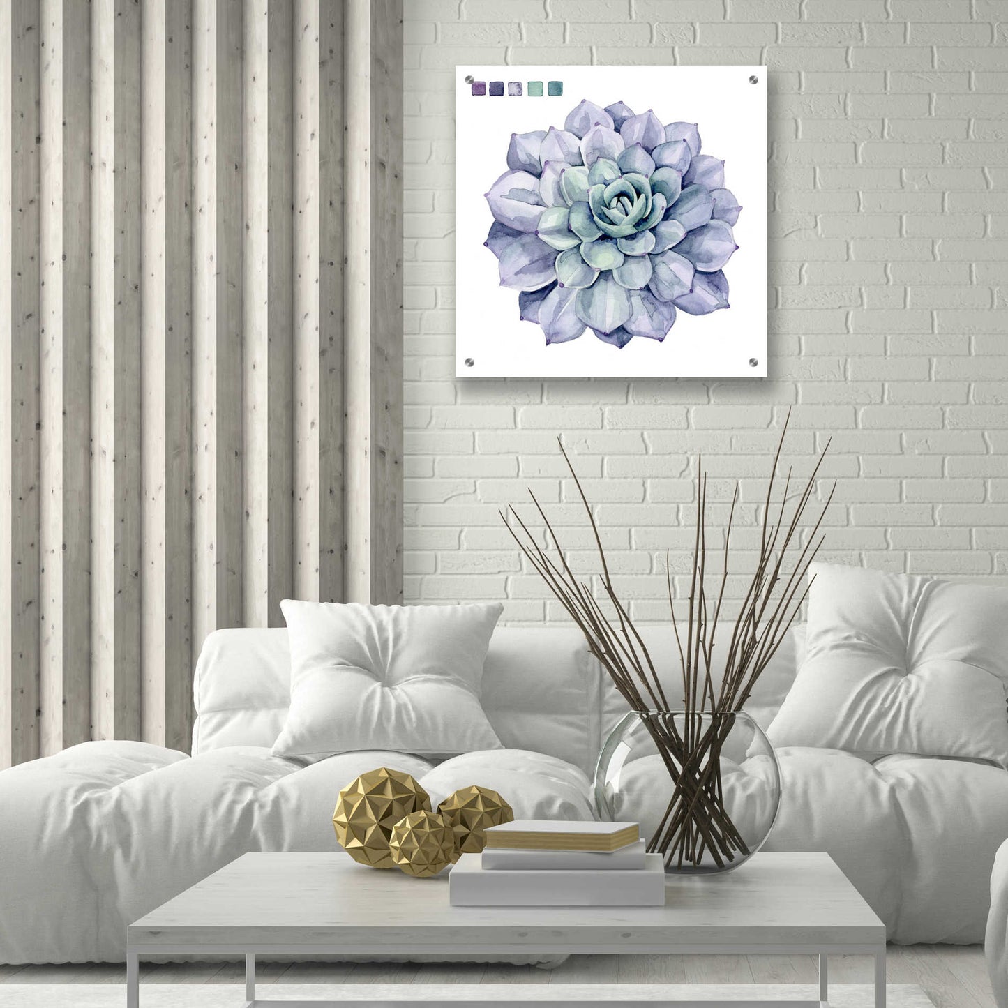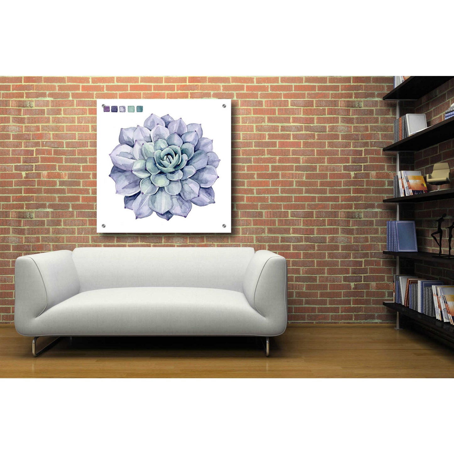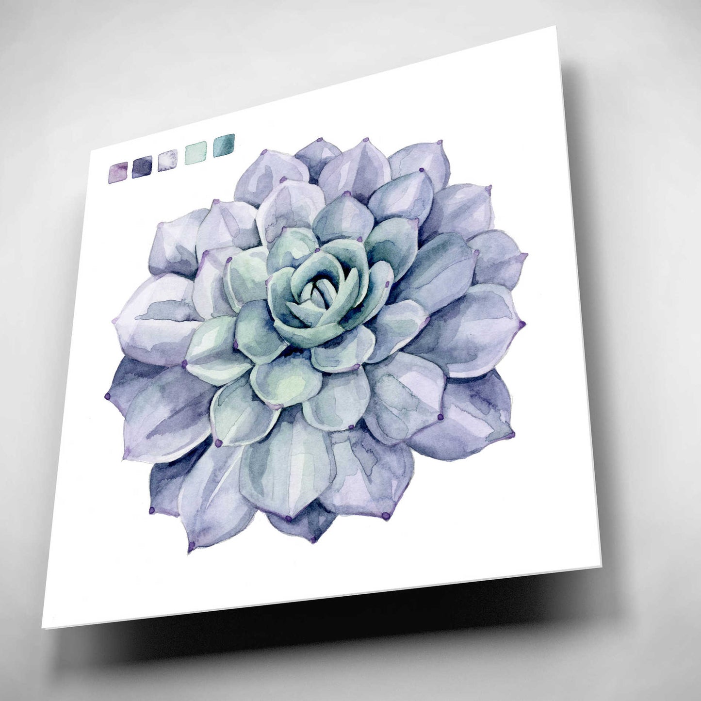 "Succulent Swatches III" by Grace Popp. Grace Popp"s primary medium has become watercolor, which she periodically supplements with other materials. She is inspired" by nature, films, history, current events, and other artists both past and present. Acrylic wall art looks amazing in your home or business. Printed on the back of the acrylic giving it depth and easy maintenance. The highly durable and hard-to-damage qualities make high definition acrylic the ideal wall art for hotels, rental properties, and restaurants. Now Epic Art brings you unmatched value in contemporary wall decor for your home as well. From small sizes to extra large sizes, it is easy to hang, won"t shatter like glass if it ever falls down, and is easy to maintain. Simply dust it off or use a damp soft cloth for cleaning.