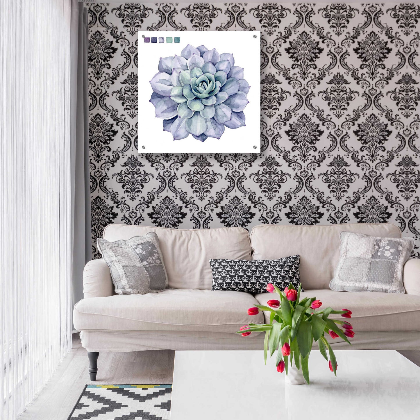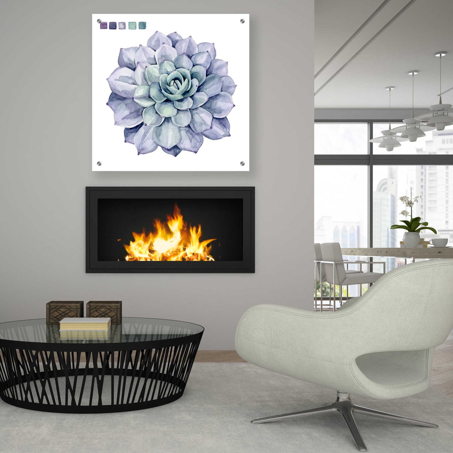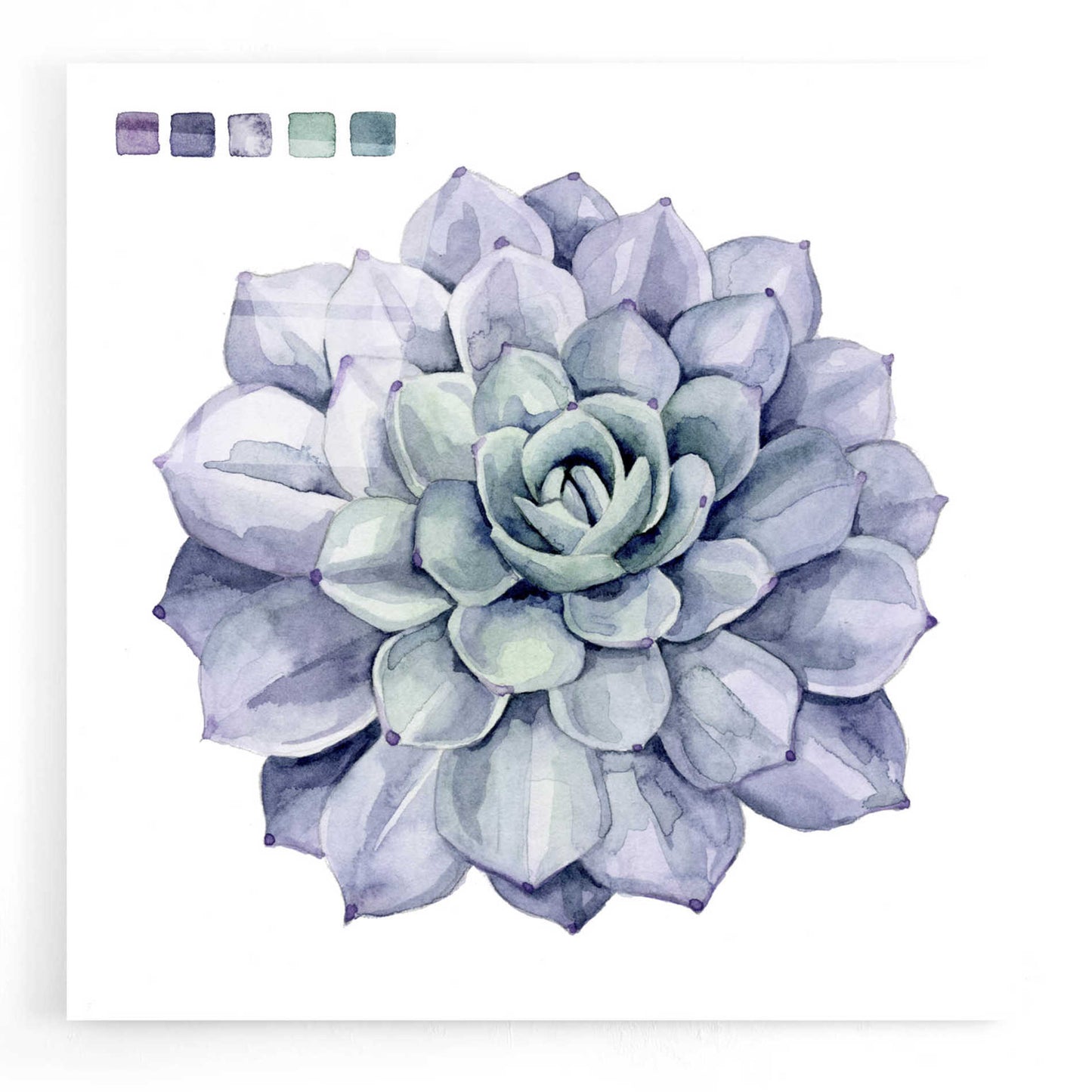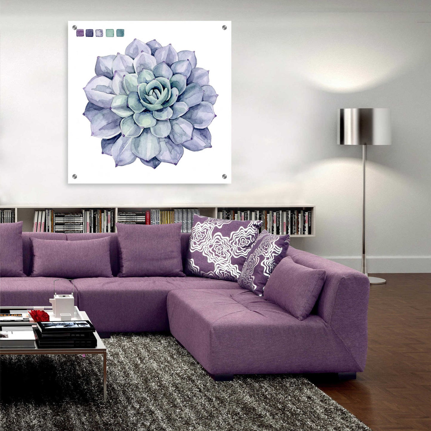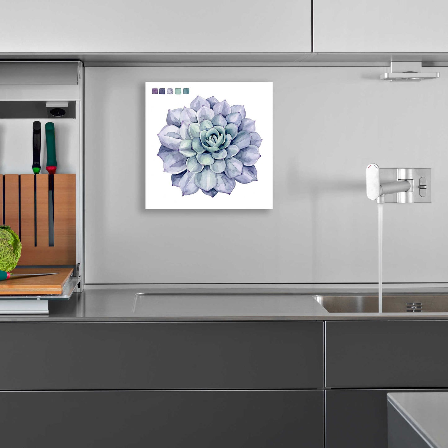 "Succulent Swatches III" by Grace Popp. Grace Popp"s primary medium has become watercolor, which she periodically supplements with other materials. She is inspired" by nature, films, history, current events, and other artists both past and present. Acrylic wall art looks amazing in your home or business. Printed on the back of the acrylic giving it depth and easy maintenance. The highly durable and hard-to-damage qualities make high definition acrylic the ideal wall art for hotels, rental properties, and restaurants. Now Epic Art brings you unmatched value in contemporary wall decor for your home as well. From small sizes to extra large sizes, it is easy to hang, won"t shatter like glass if it ever falls down, and is easy to maintain. Simply dust it off or use a damp soft cloth for cleaning.