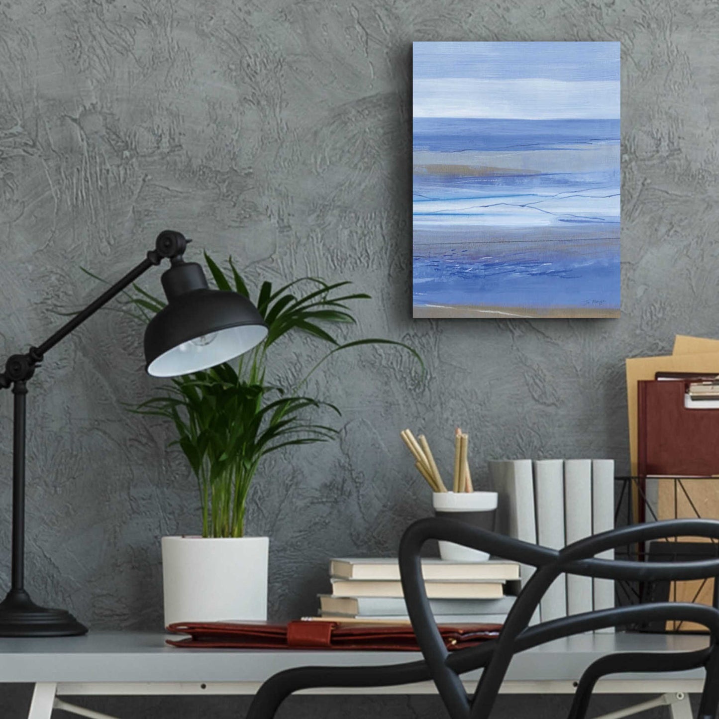 Jo Maye works with acrylic as an abstract painter. She pulls her inspiration from the coastlines of Ireland, where she was born and raised. “Here the weather is constantly changing. The light moves across the sky, land, and sea creating patterns as it goes. I like to walk and absorb these changes, then take these sensations back to the studio and paint from memory.”