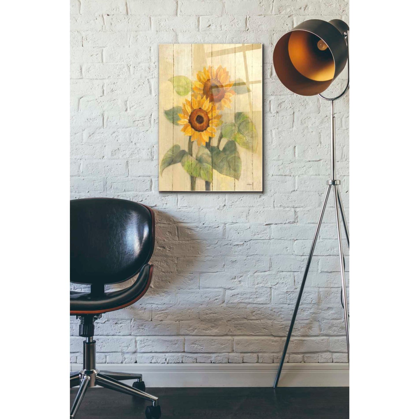 Epic Art 'Summer Sunflowers I on Barn Board' by Albena Hristova, Acrylic Glass Wall Art