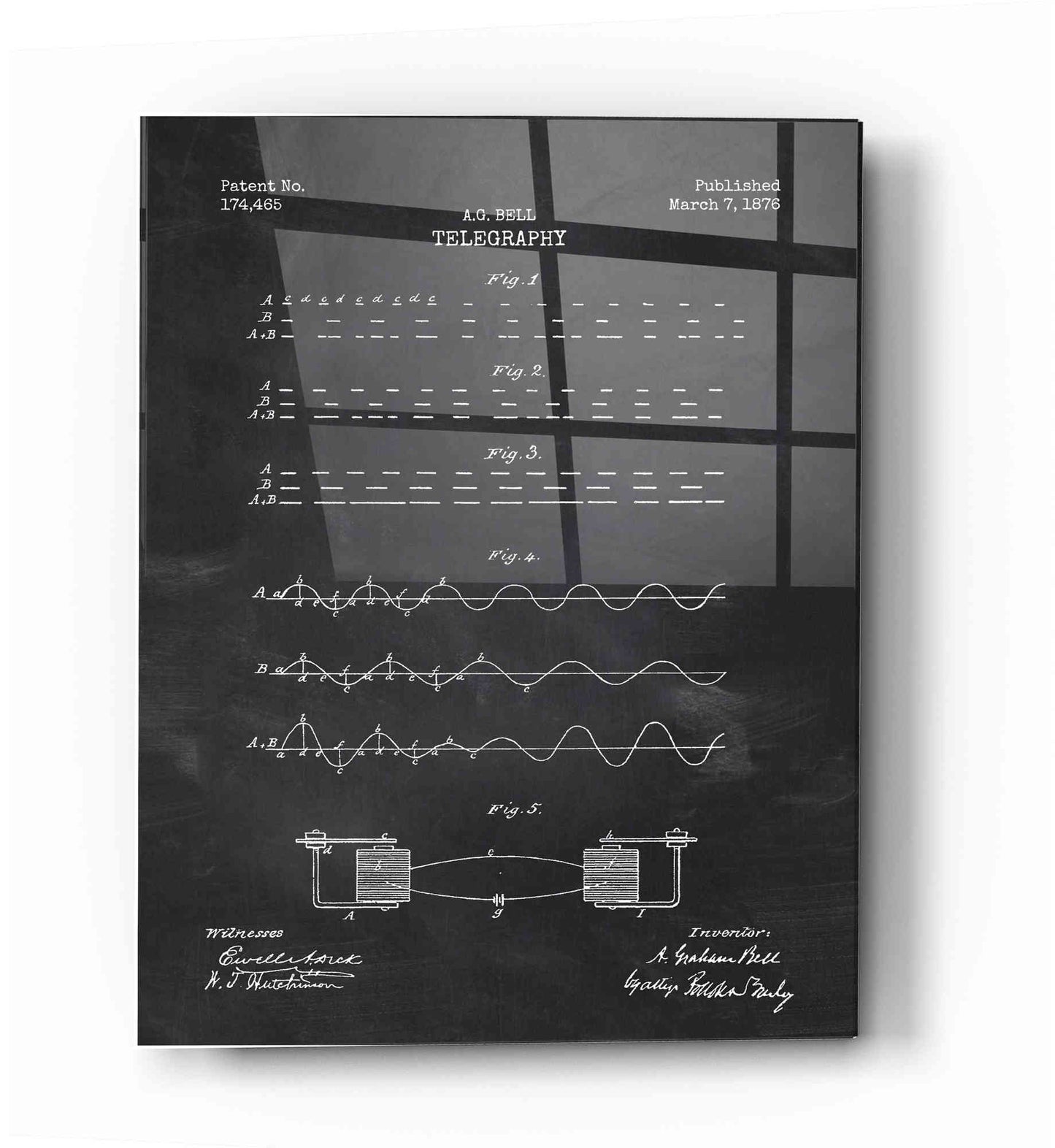 Telegraphy Blueprint Patent Chalkboard printed on crystal clear acrylic glass. Official US Patent remastered by Epic Art. Available on blackboard or parchment background.