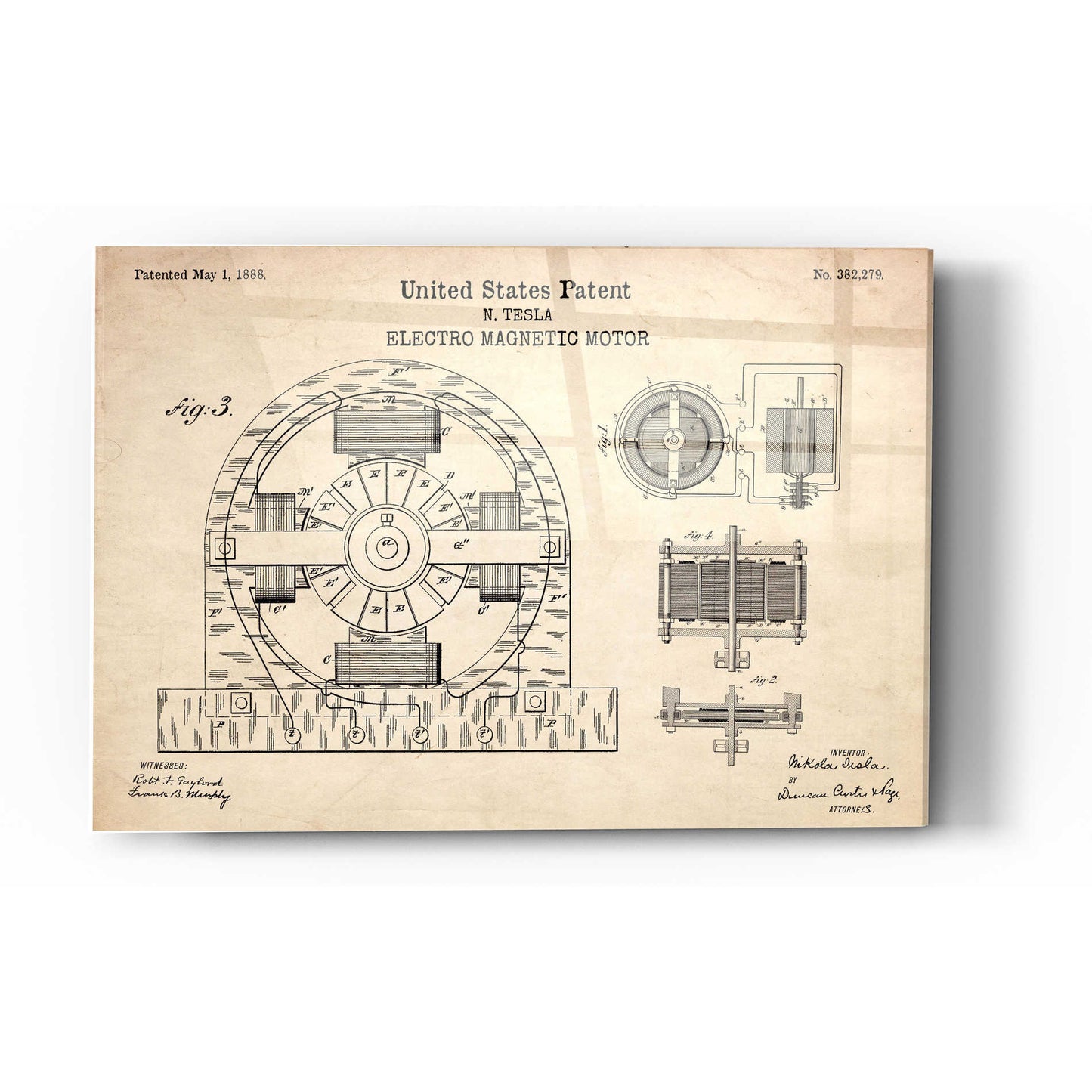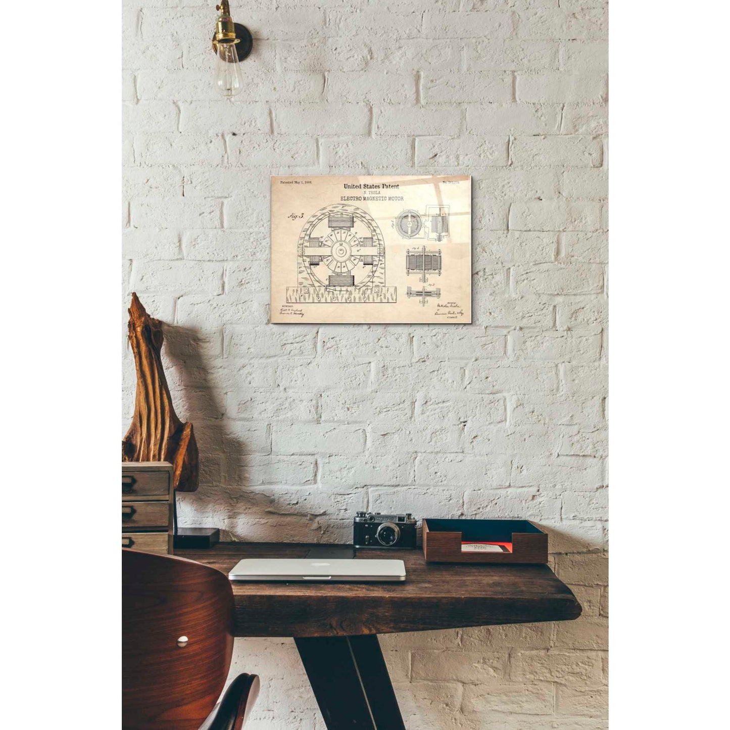 Epic Art 'Tesla Electro Magnetic Motor Blueprint Patent Parchment' Acrylic Glass Wall Art