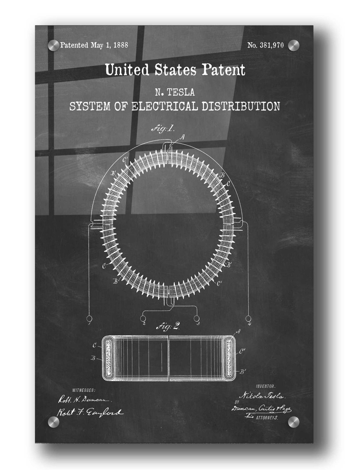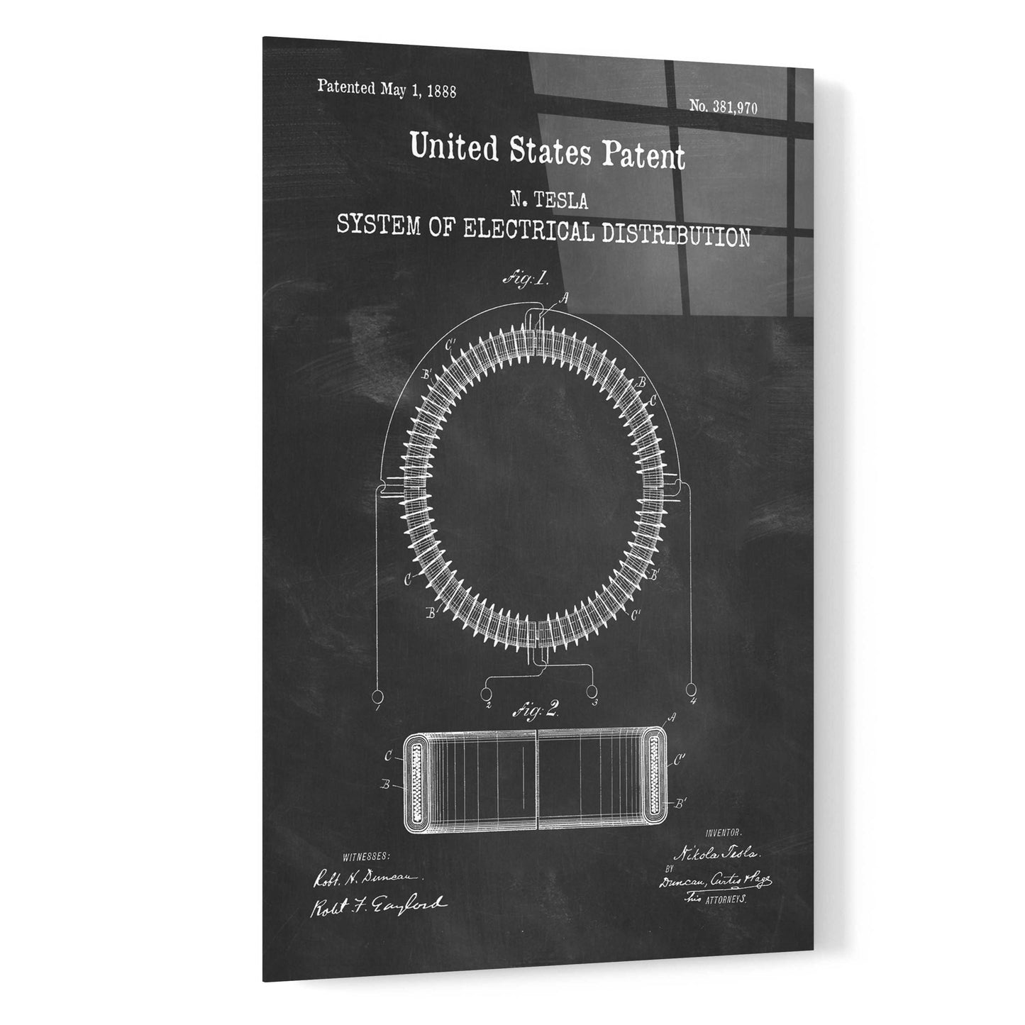 Epic Art 'Tesla's System of Electrical Distribution Blueprint Patent Chalkboard,' Acrylic Glass Wall Art