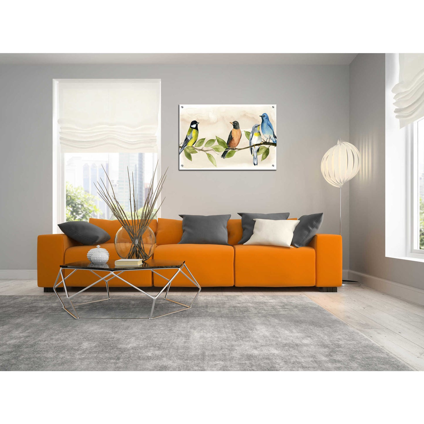 "Treetop Gathering I" by Grace Popp. Grace Popp"s primary medium has become watercolor, which she periodically supplements with other materials. She is inspired" by nature, films, history, current events, and other artists both past and present. Acrylic wall art looks amazing in your home or business. Printed on the back of the acrylic giving it depth and easy maintenance. The highly durable and hard-to-damage qualities make high definition acrylic the ideal wall art for hotels, rental properties, and restaurants. Now Epic Art brings you unmatched value in contemporary wall decor for your home as well. From small sizes to extra large sizes, it is easy to hang, won"t shatter like glass if it ever falls down, and is easy to maintain. Simply dust it off or use a damp soft cloth for cleaning.