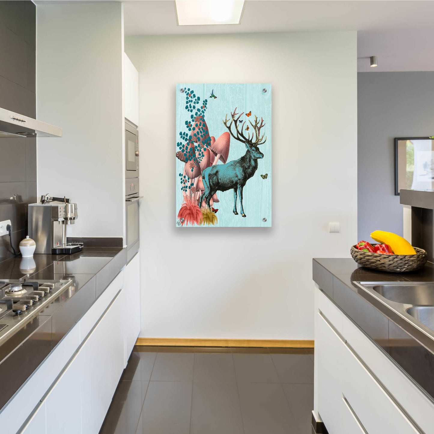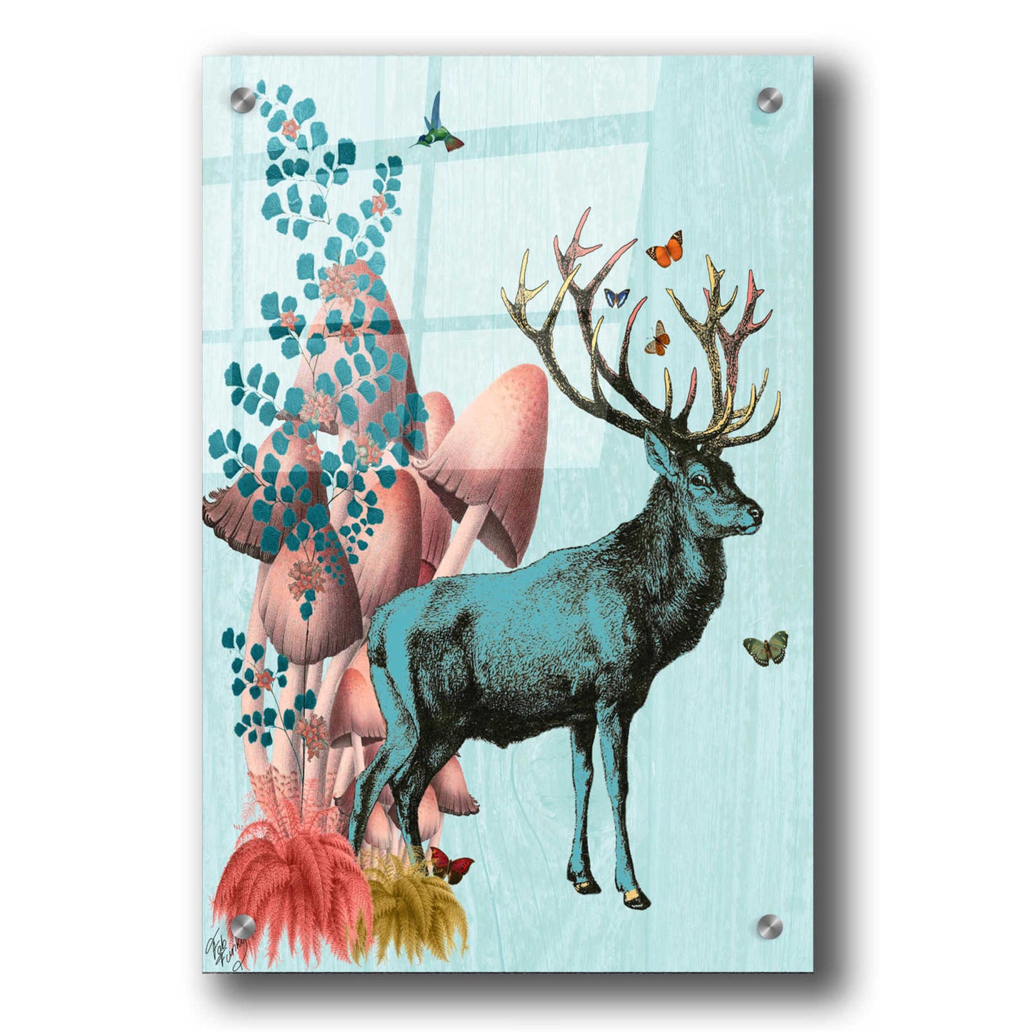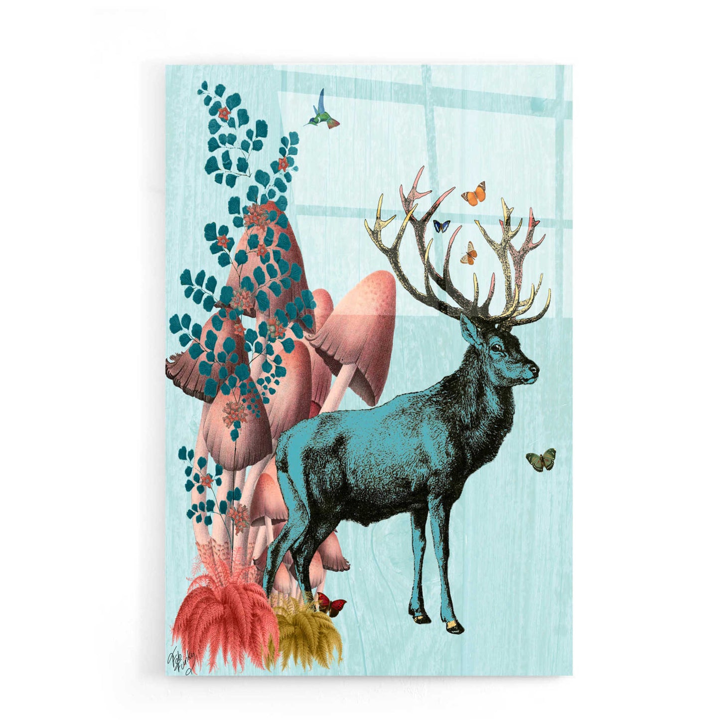 Epic Art 'Turquoise Deer in Mushroom Forest' by Fab Funky, Acrylic Glass Wall Art
