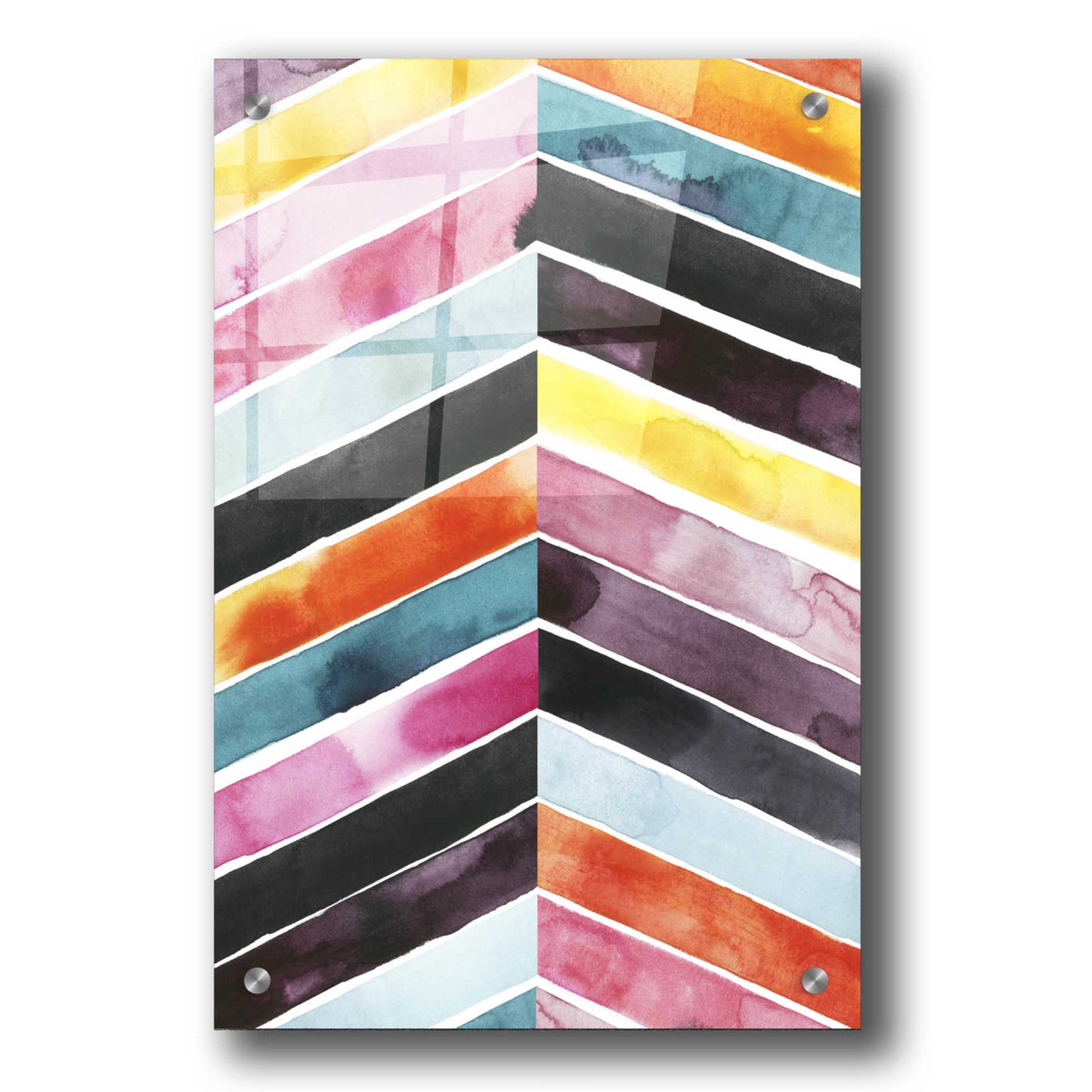 "Vivid Watercolor Chevron I" by Grace Popp. Grace Popp"s primary medium has become watercolor, which she periodically supplements with other materials. She is inspired" by nature, films, history, current events, and other artists both past and present. Acrylic wall art looks amazing in your home or business. Printed on the back of the acrylic giving it depth and easy maintenance. The highly durable and hard-to-damage qualities make high definition acrylic the ideal wall art for hotels, rental properties, and restaurants. Now Epic Art brings you unmatched value in contemporary wall decor for your home as well. From small sizes to extra large sizes, it is easy to hang, won"t shatter like glass if it ever falls down, and is easy to maintain. Simply dust it off or use a damp soft cloth for cleaning.