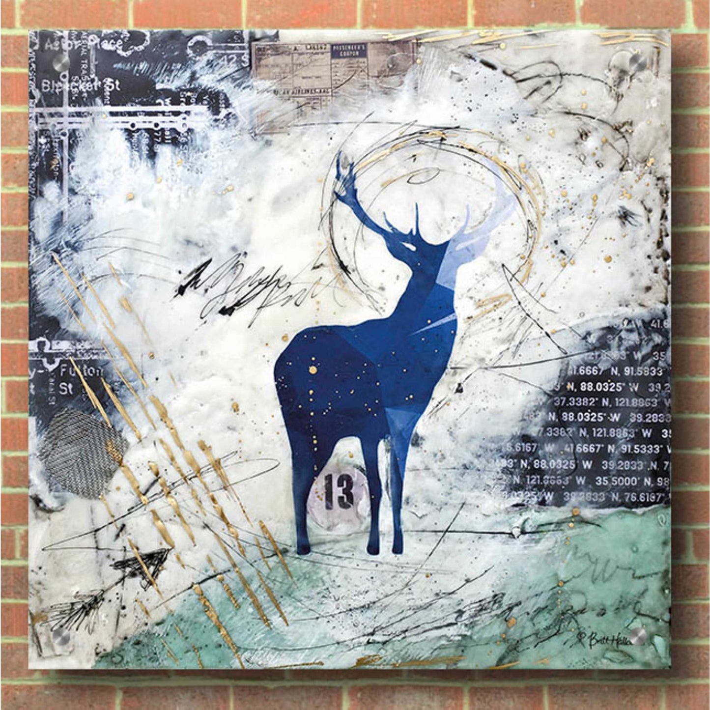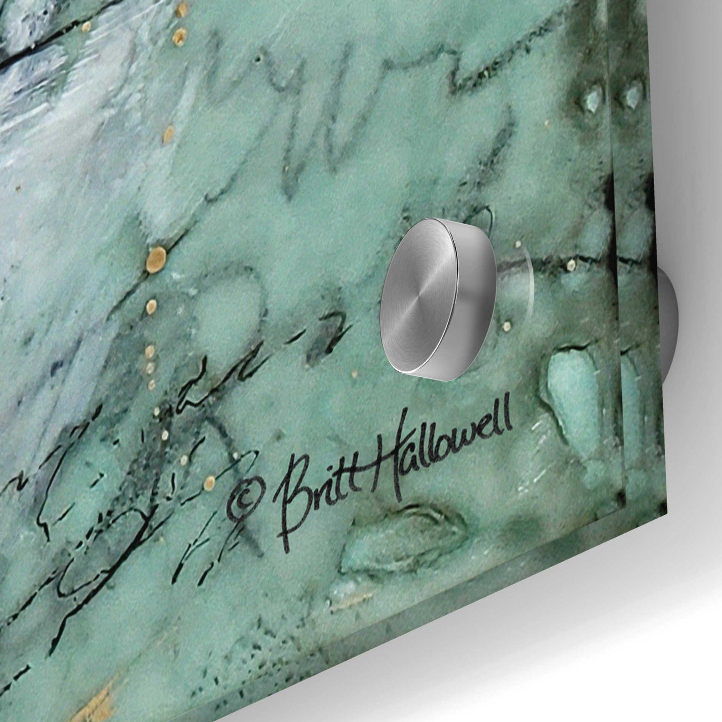 Britt is a self-taught artist. She uses the natural weathering process created by natural elements; thus, real rust is utilized in her work. Plaster is also incorporated in multiple layers over a period of several days. This results in artwork that is completely unique and simply cannot be duplicated due to the environmental changes of temperature and humidity. "I love working with rust and textures because it allows me to create minimalist designs with bold contrasts that are simple and yet very intricate in their nature." Britt's goal is to create artwork that evokes positive emotions from the viewer with the use of imagery, color, and splatter.
