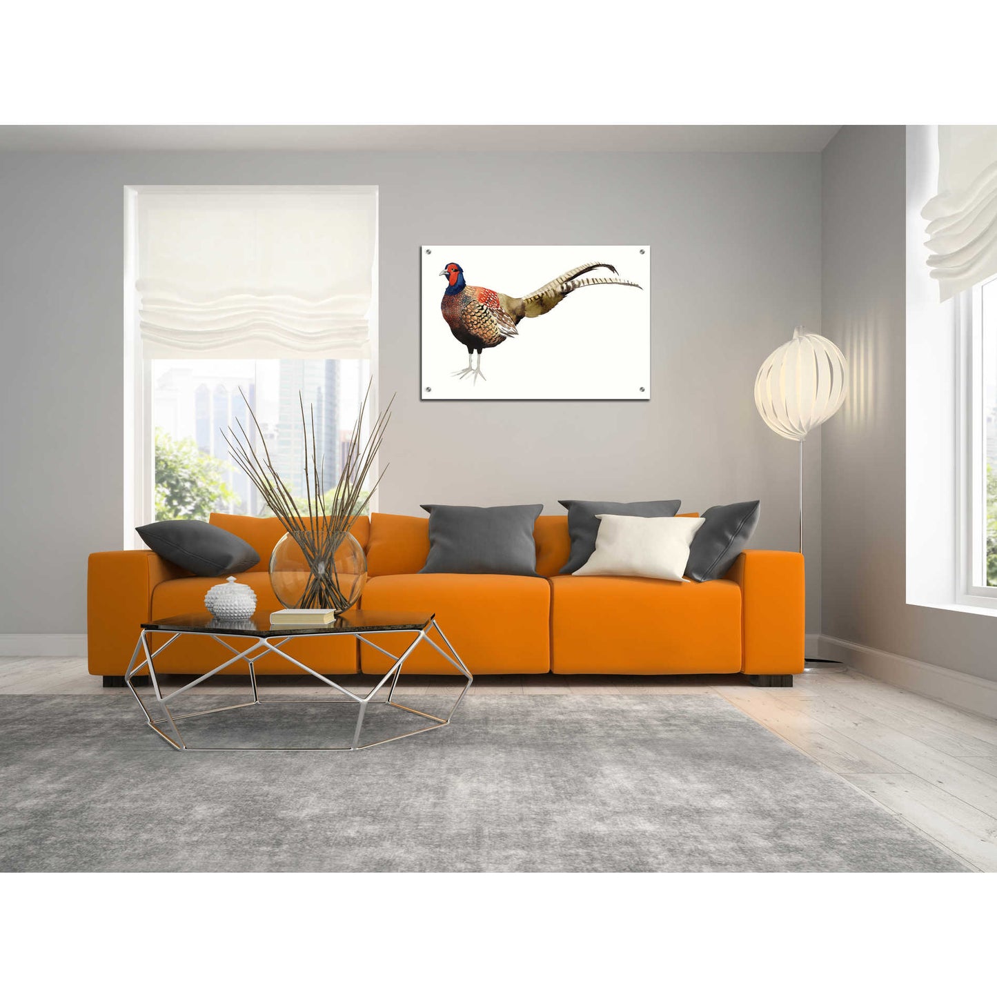 "Watercolor Pheasant II" by Grace Popp. Grace Popp earned her BFA in Communication Arts from Virginia Commonwealth University. Her primary medium has become watercolor, which she periodically supplements with other materials. She is inspired by nature, films, history, current events, and other artists both past and present. She currently lives in Charlottesville VA, with her partner and two perfect cats, Hitch and Ollie. Acrylic wall art looks amazing in your home or business. Printed on the back of the acrylic giving it depth and easy maintenance. The highly durable and hard-to-damage qualities make high definition acrylic the ideal wall art for hotels, rental properties, and restaurants. Now Epic Art brings you unmatched value in contemporary wall decor for your home as well. From small sizes to extra large sizes, it is easy to hang, won"t shatter like glass if it ever falls down, and is easy to maintain. Simply dust it off or use a damp soft cloth for cleaning.