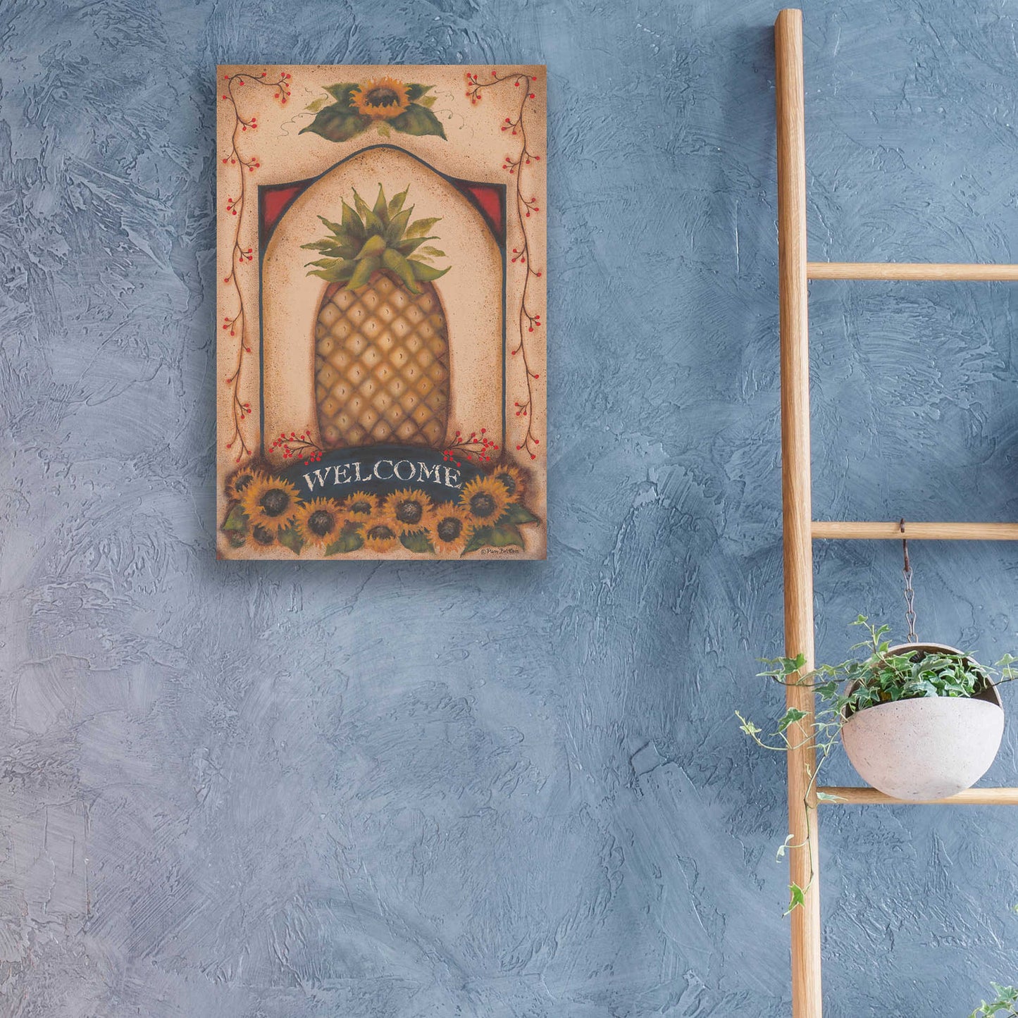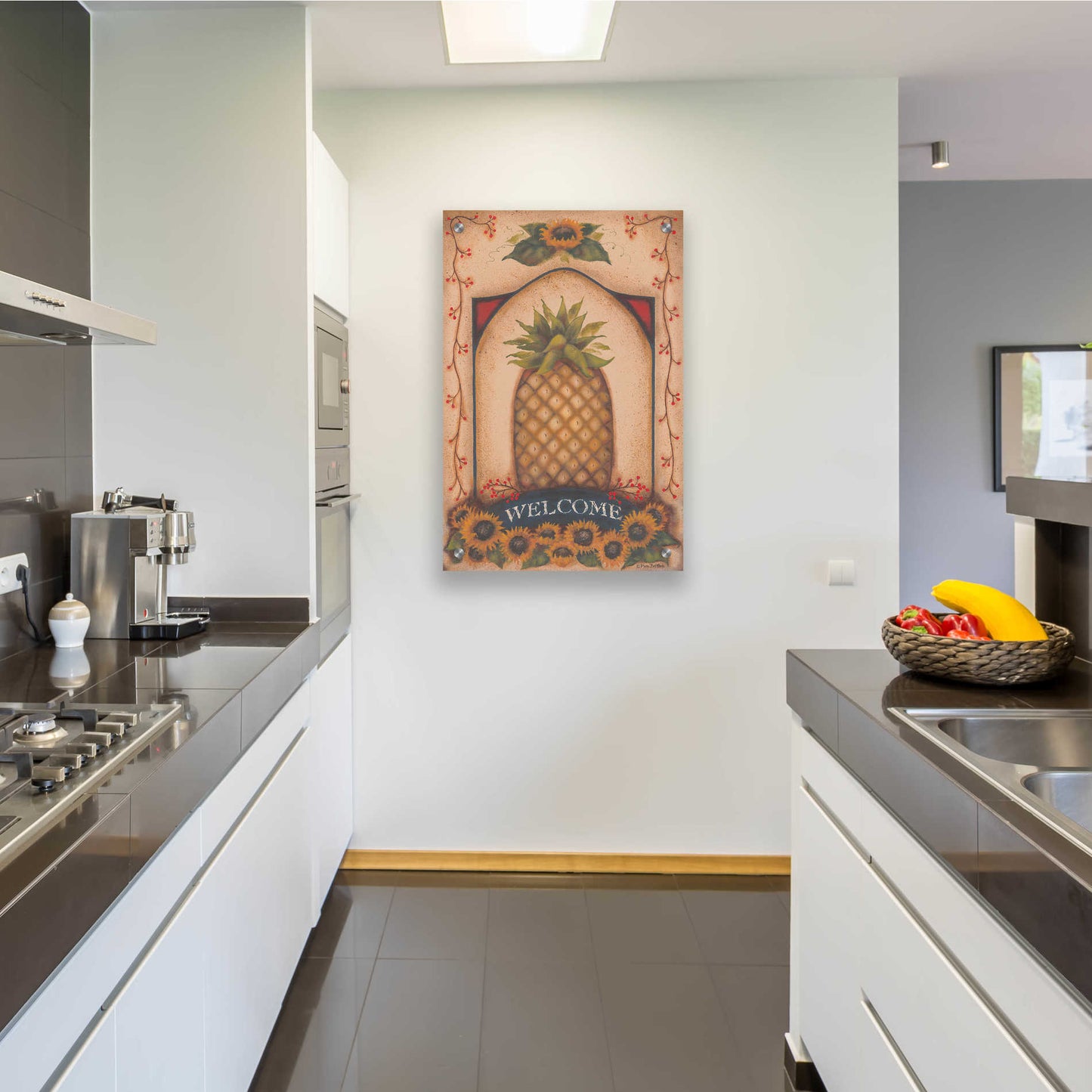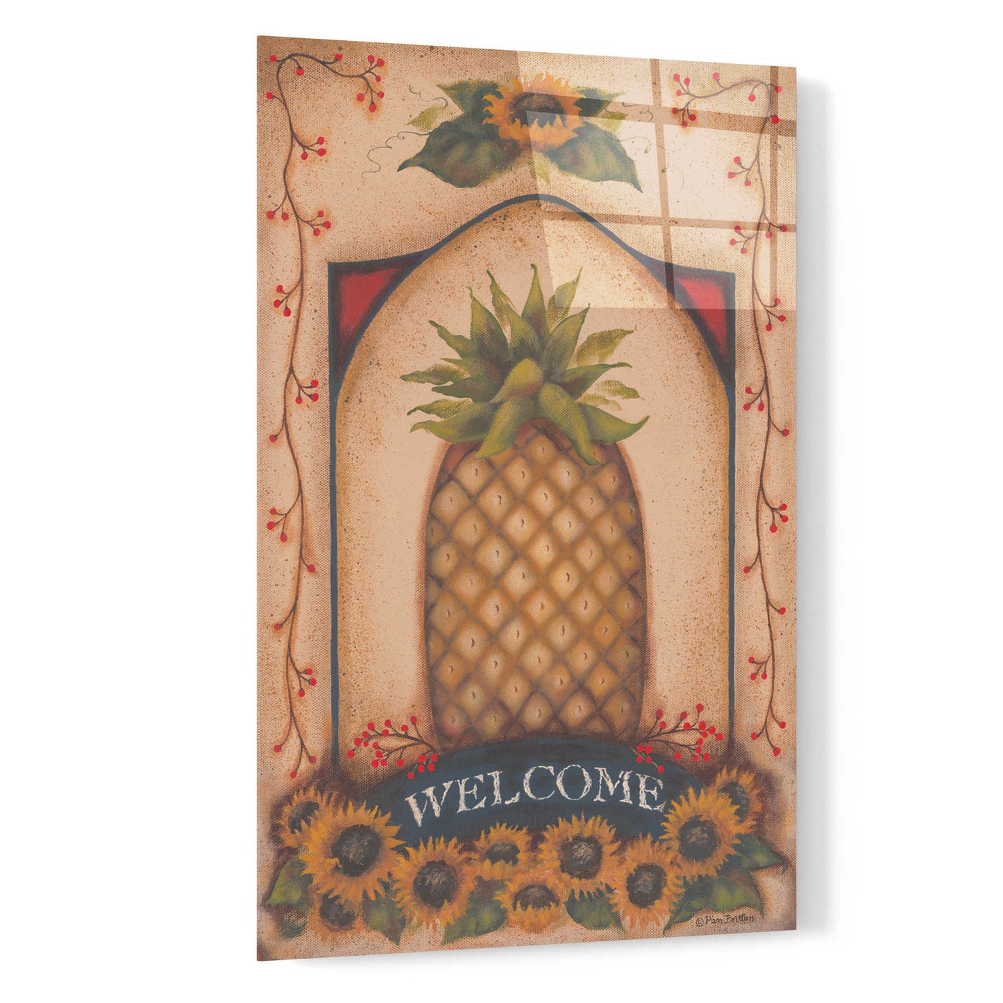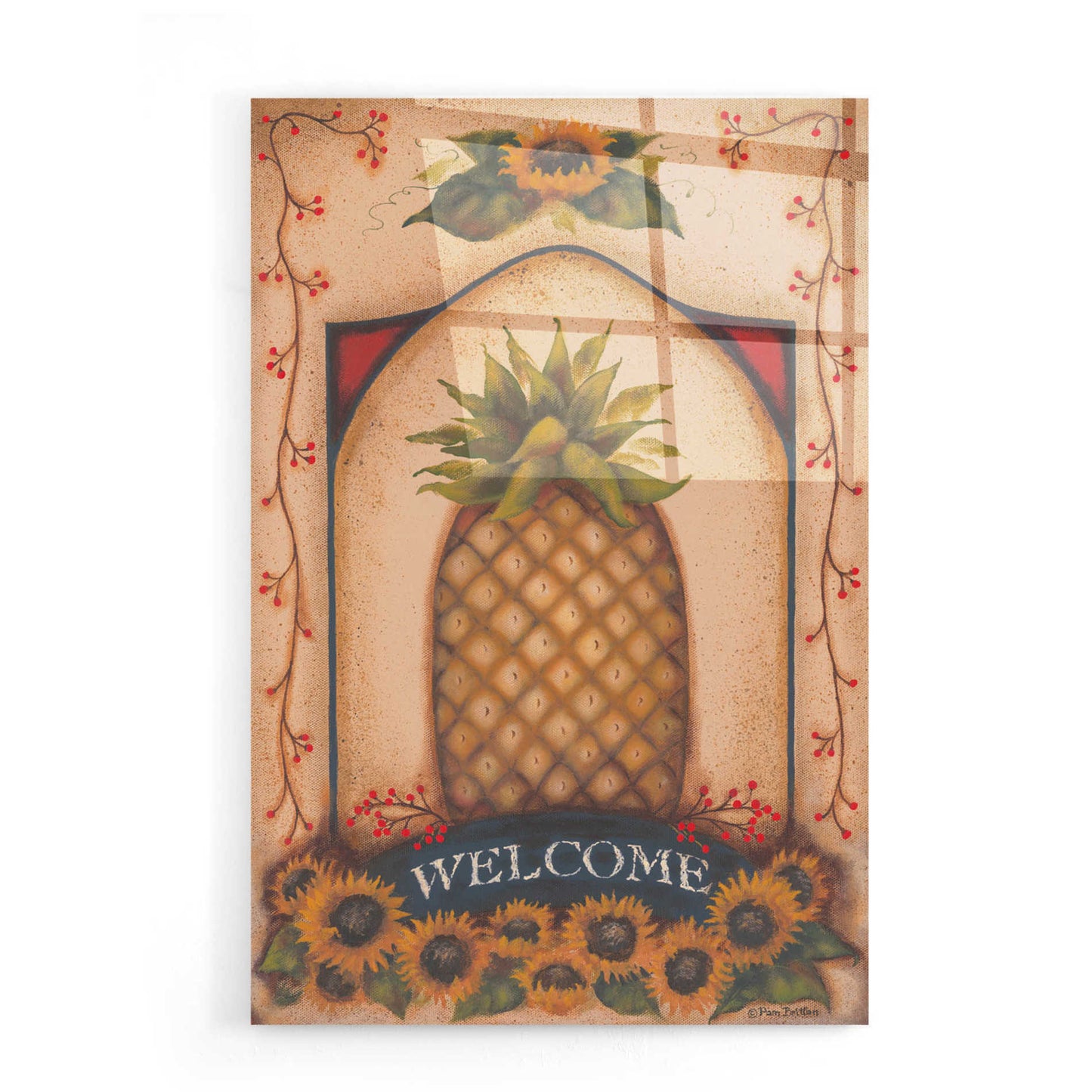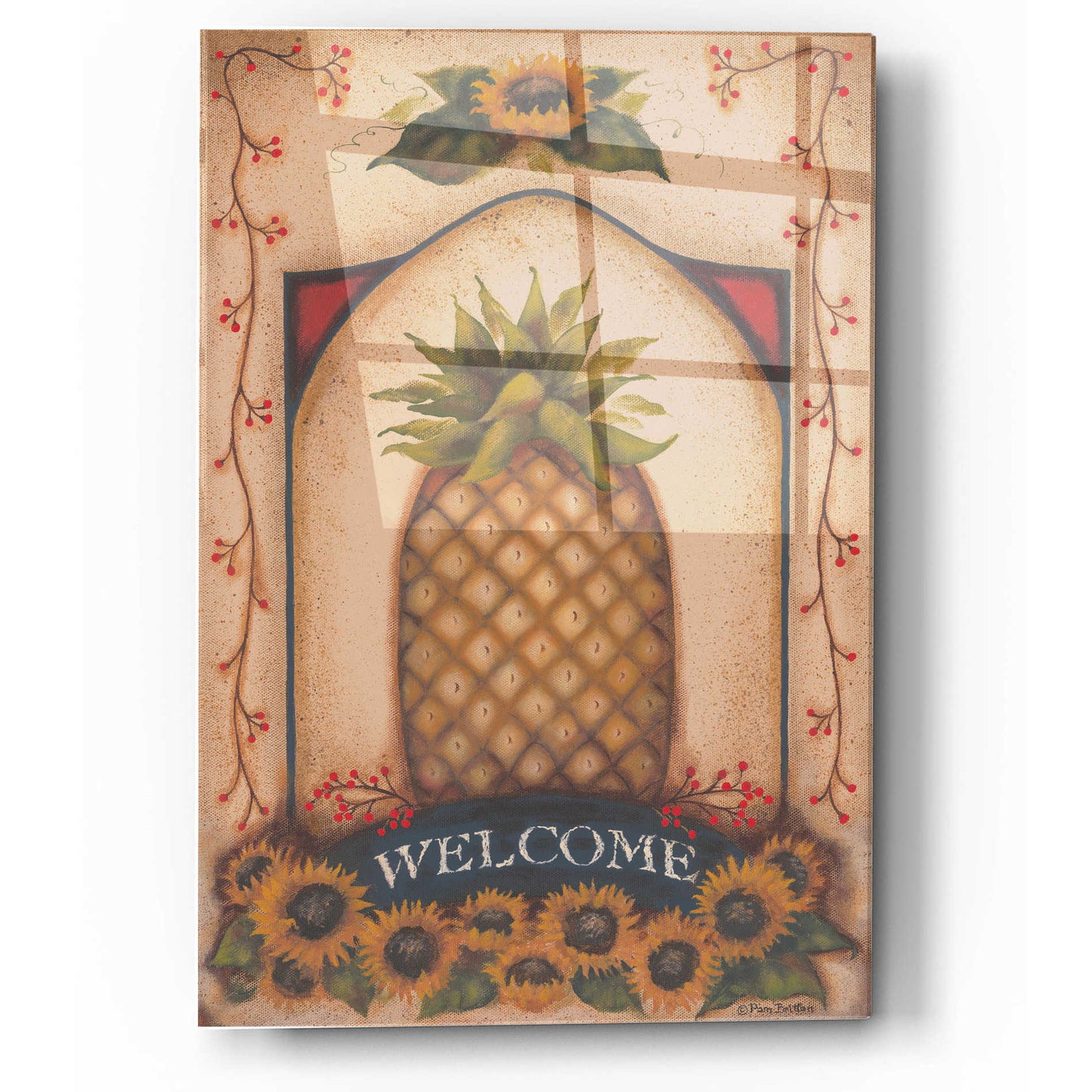 Epic Art 'Welcome Pineapple & Sunflowers' by Pam Britton, Acrylic Glass Wall Art