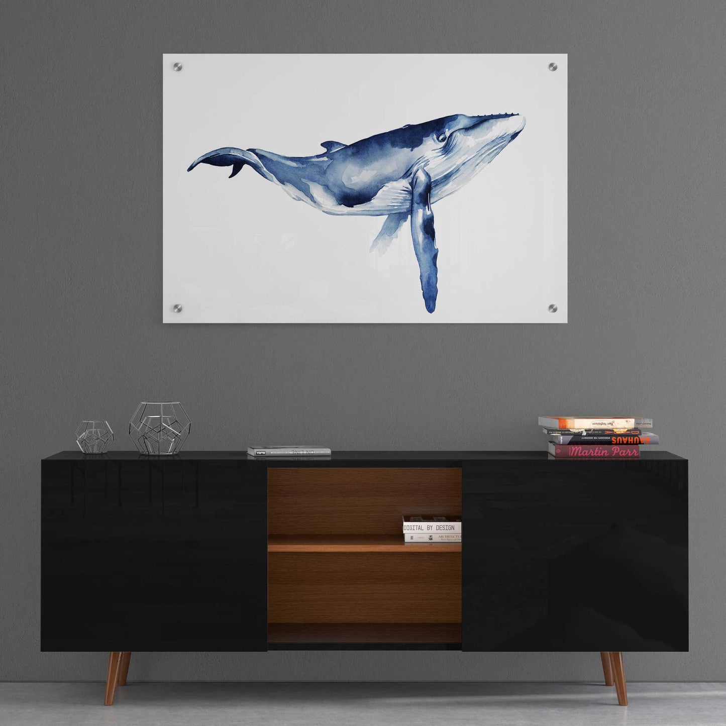 "Whale Portrait I" by Grace Popp. Grace Popp earned her BFA in Communication Arts from Virginia Commonwealth University. Her primary medium has become watercolor, which she periodically supplements with other materials. She is inspired by nature, films, history, current events, and other artists both past and present. She currently lives in Charlottesville VA, with her partner and two perfect cats, Hitch and Ollie. Acrylic wall art looks amazing in your home or business. Printed on the back of the acrylic giving it depth and easy maintenance. The highly durable and hard-to-damage qualities make high definition acrylic the ideal wall art for hotels, rental properties, and restaurants. Now Epic Art brings you unmatched value in contemporary wall decor for your home as well. From small sizes to extra large sizes, it is easy to hang, won"t shatter like glass if it ever falls down, and is easy to maintain. Simply dust it off or use a damp soft cloth for cleaning.