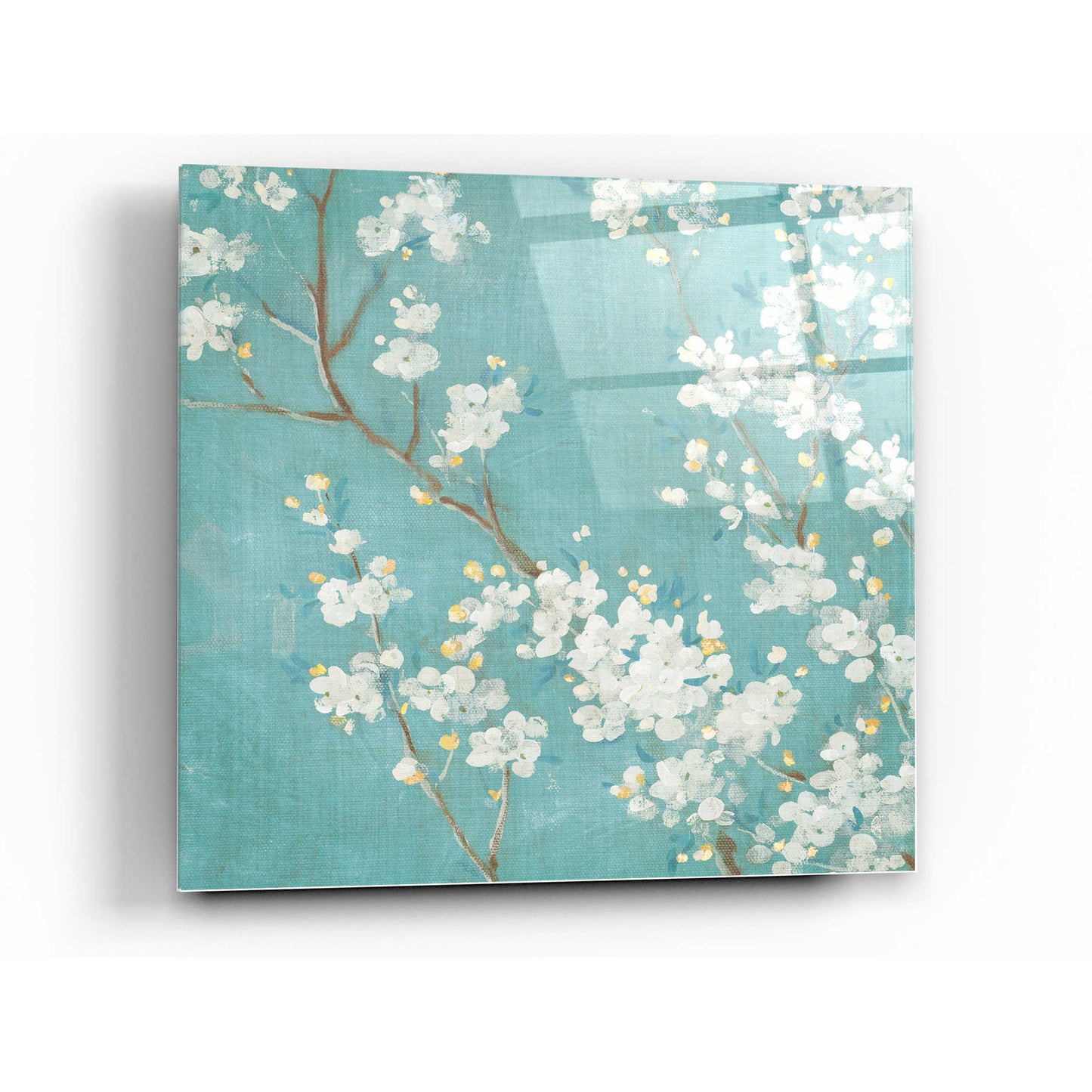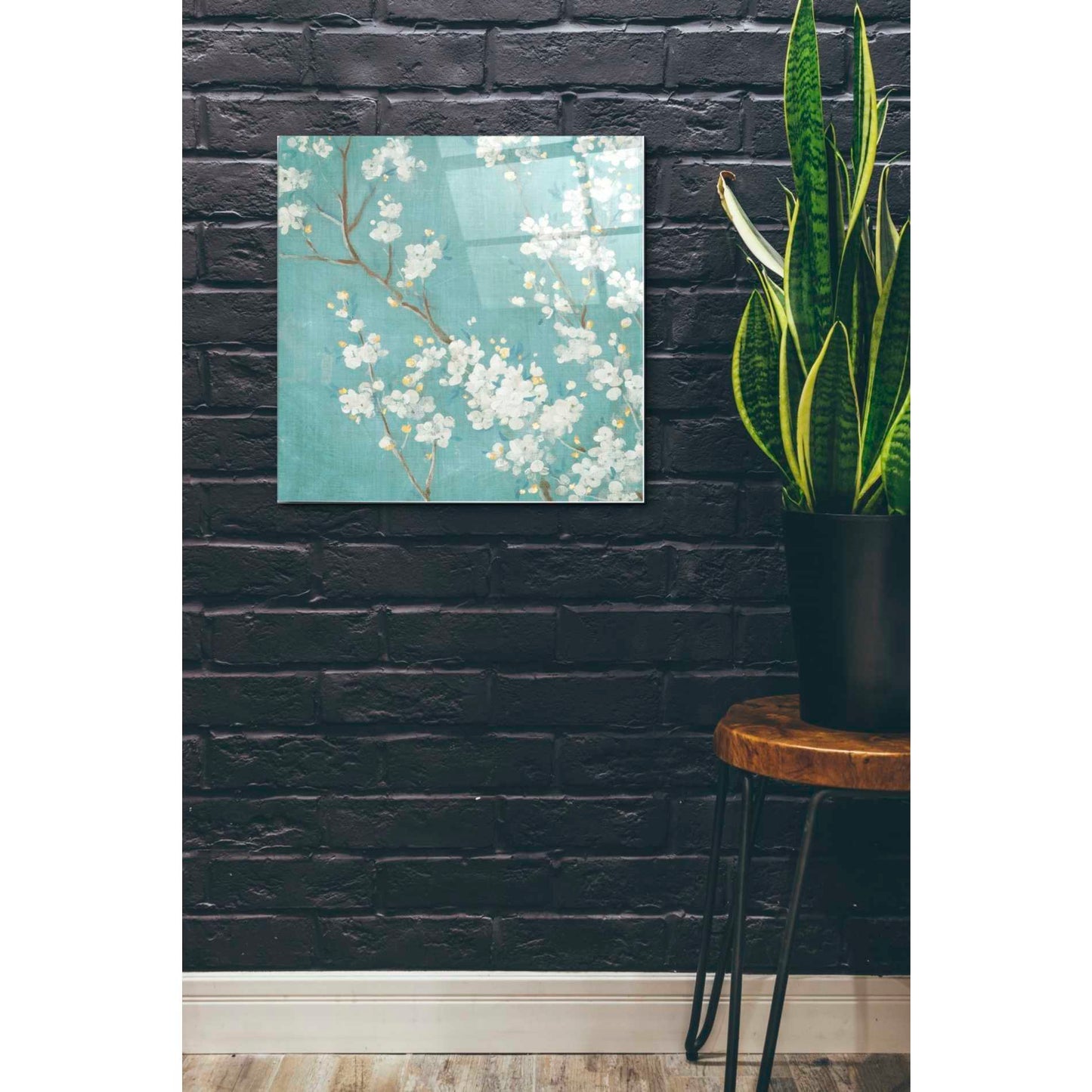 Epic Art 'White Cherry Blossom II on Blue' by Danhui Nai, Acrylic Glass Wall Art