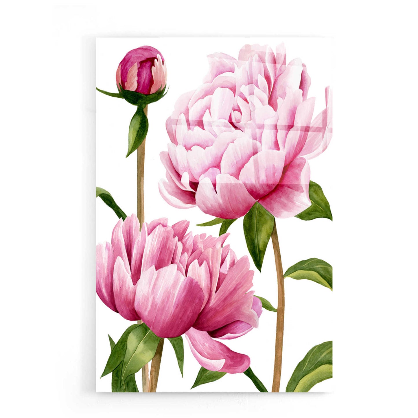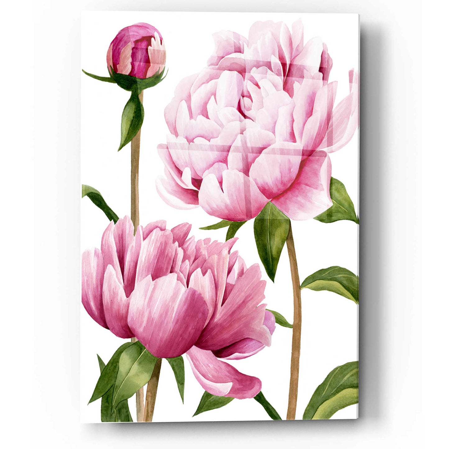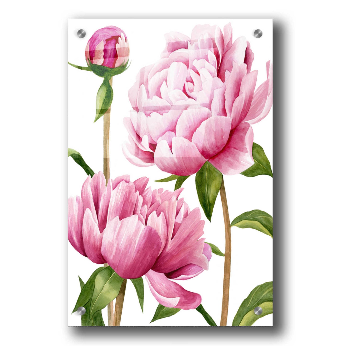 "Winsome Peonies I" by Grace Popp. Grace Popp earned her BFA in Communication Arts from Virginia Commonwealth University. Her primary medium has become watercolor, which she periodically supplements with other materials. She is inspired by nature, films, history, current events, and other artists both past and present. She currently lives in Charlottesville VA, with her partner and two perfect cats, Hitch and Ollie. Acrylic wall art looks amazing in your home or business. Printed on the back of the acrylic giving it depth and easy maintenance. The highly durable and hard-to-damage qualities make high definition acrylic the ideal wall art for hotels, rental properties, and restaurants. Now Epic Art brings you unmatched value in contemporary wall decor for your home as well. From small sizes to extra large sizes, it is easy to hang, won"t shatter like glass if it ever falls down, and is easy to maintain. Simply dust it off or use a damp soft cloth for cleaning.