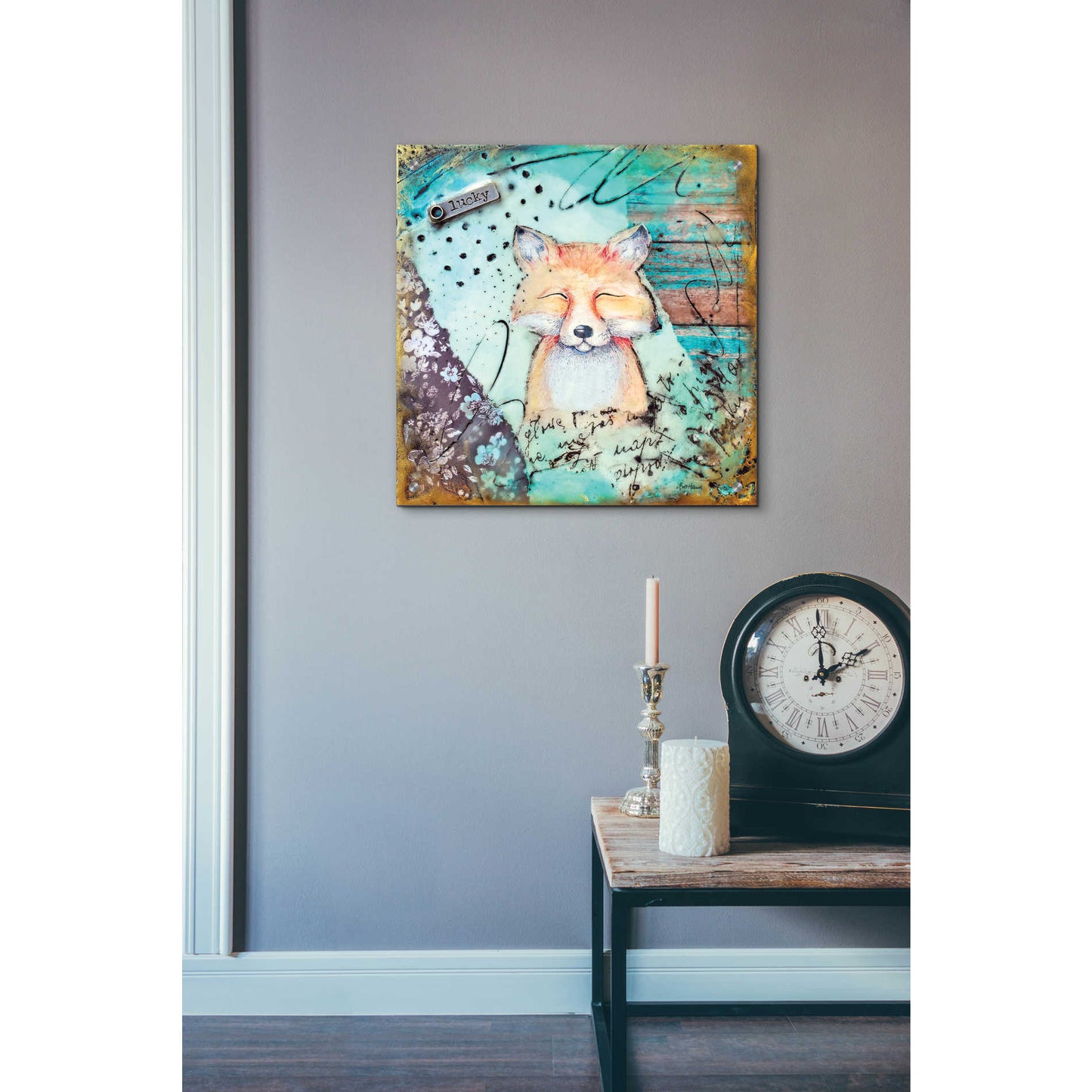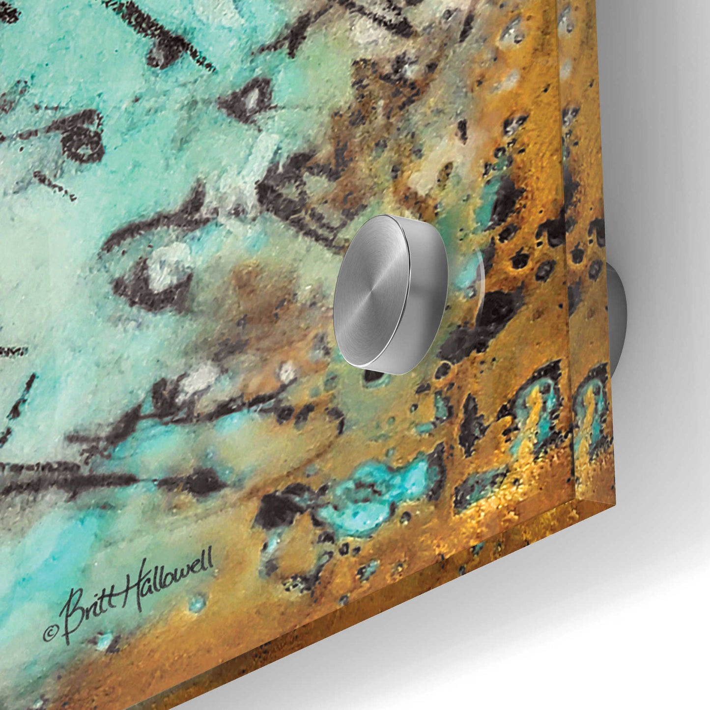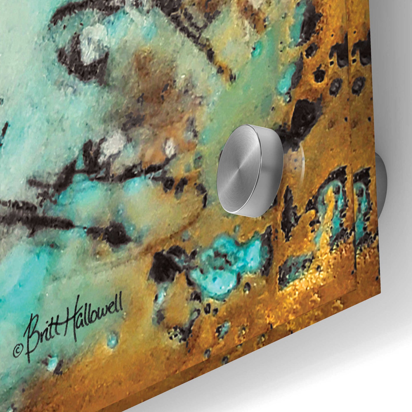 Britt is a self-taught artist. She uses the natural weathering process created by natural elements; thus, real rust is utilized in her work. Plaster is also incorporated in multiple layers over a period of several days. This results in artwork that is completely unique and simply cannot be duplicated due to the environmental changes of temperature and humidity. "I love working with rust and textures because it allows me to create minimalist designs with bold contrasts that are simple and yet very intricate in their nature." Britt's goal is to create artwork that evokes positive emotions from the viewer with the use of imagery, color, and splatter.